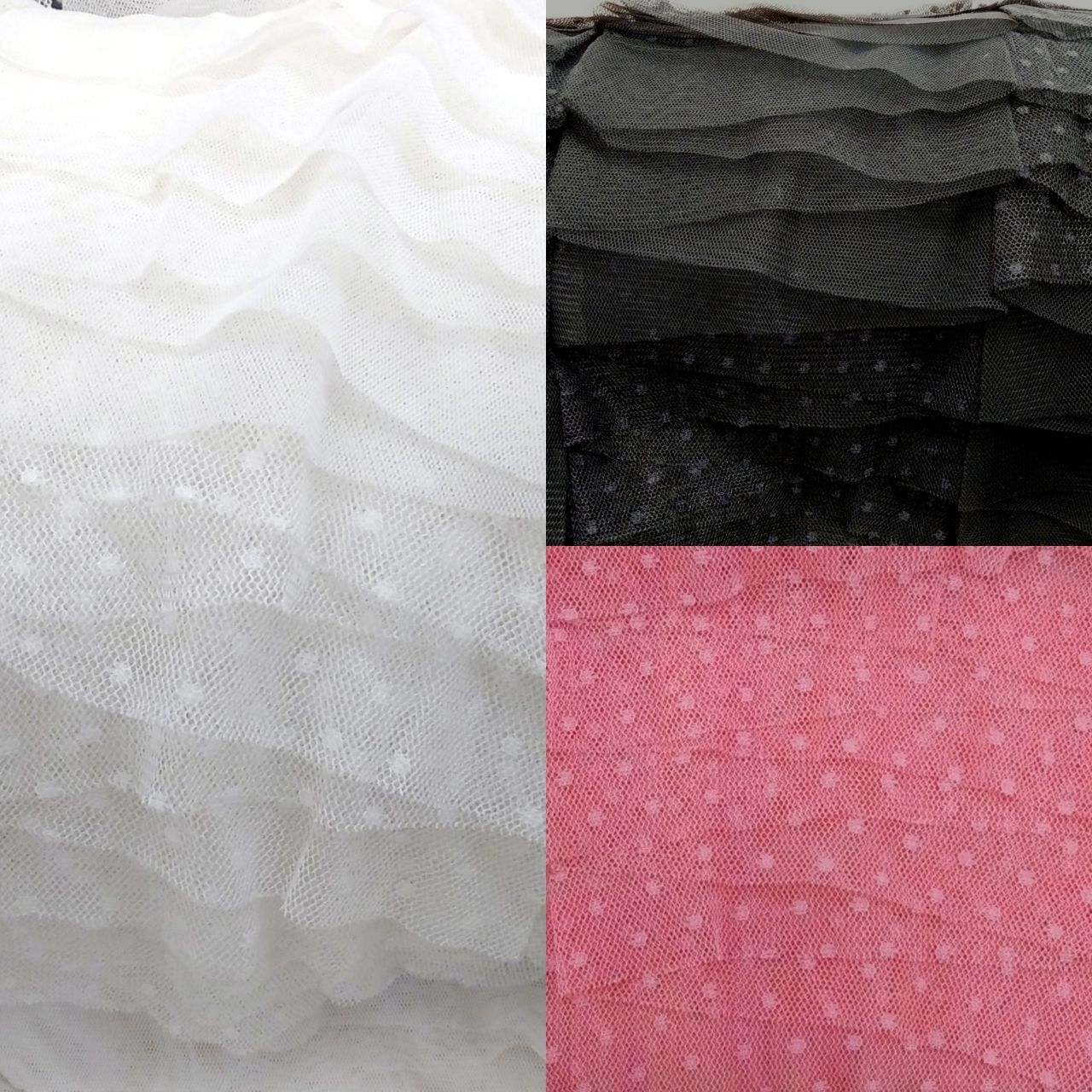 下の台がうっすら透けるくらいのチュールがランダムにフリルになっているので、ボリューム感がありますがふわっと軽やかなんです。