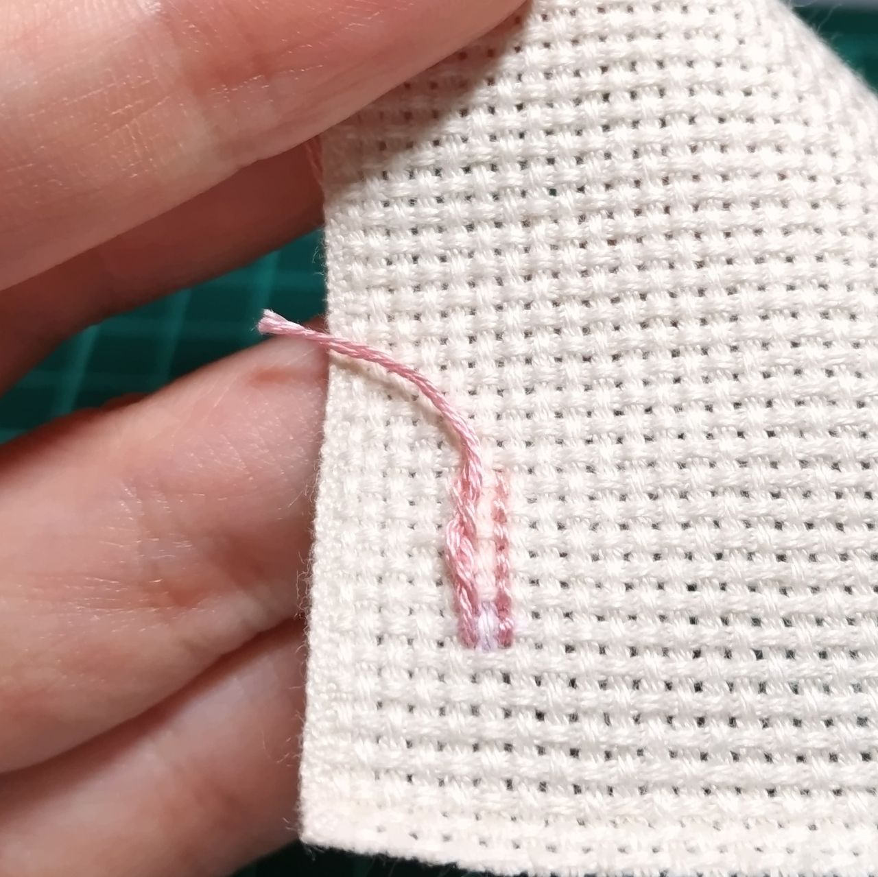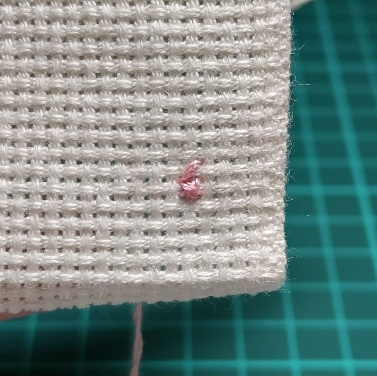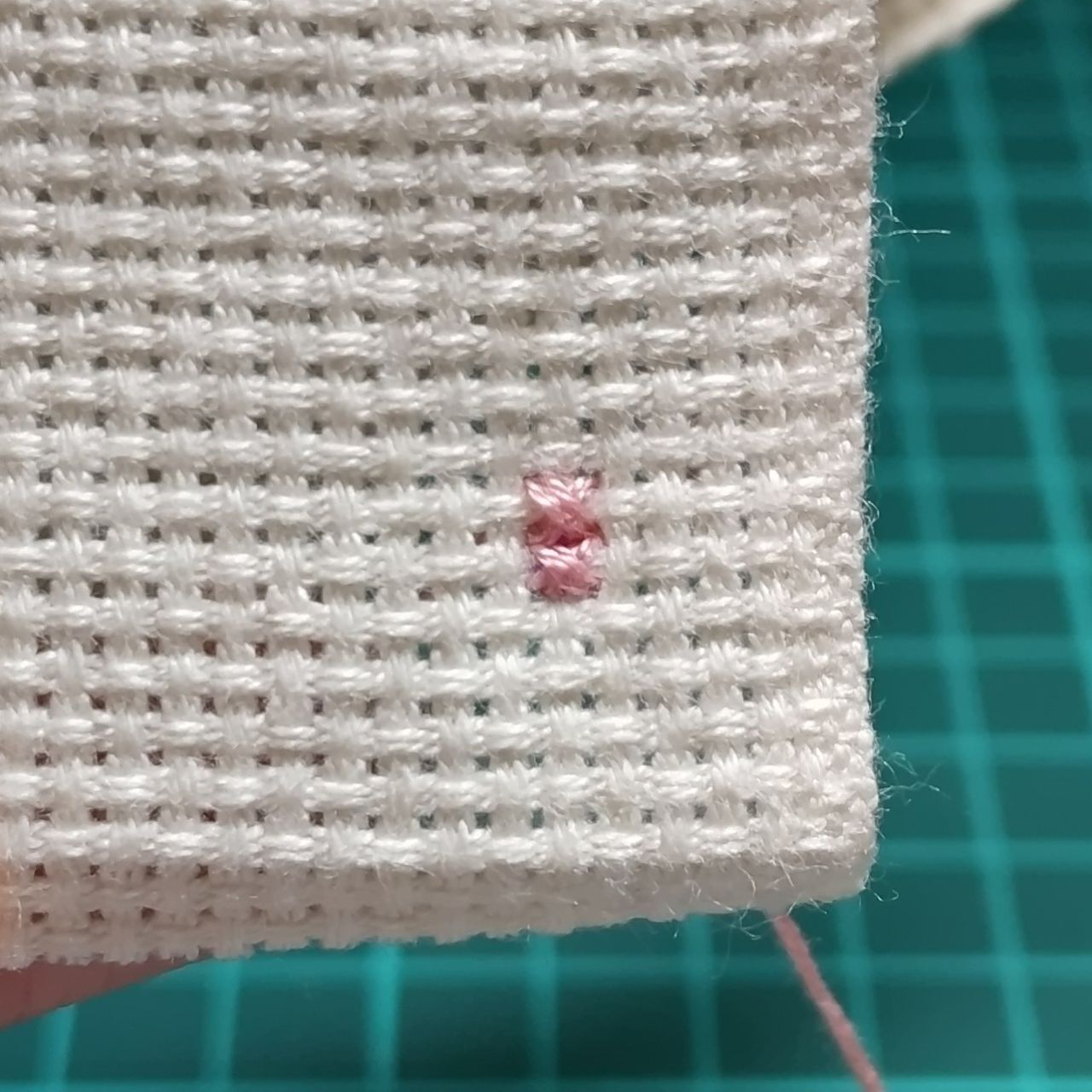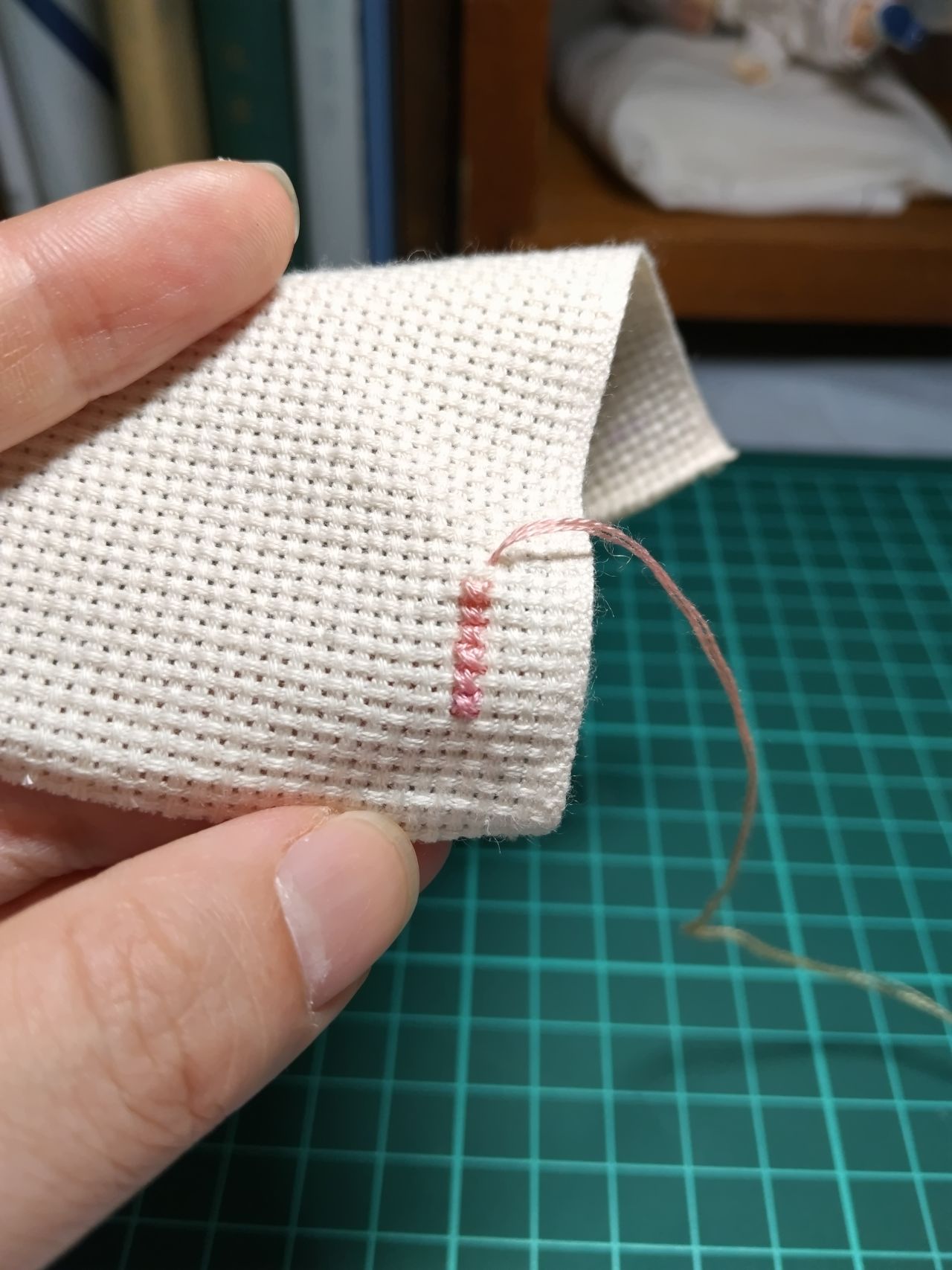 ちくちく進みまして、このあたりで糸が短くなりました。糸は約50cmありましたが、クロスステッチだとあっという間の長さでした。