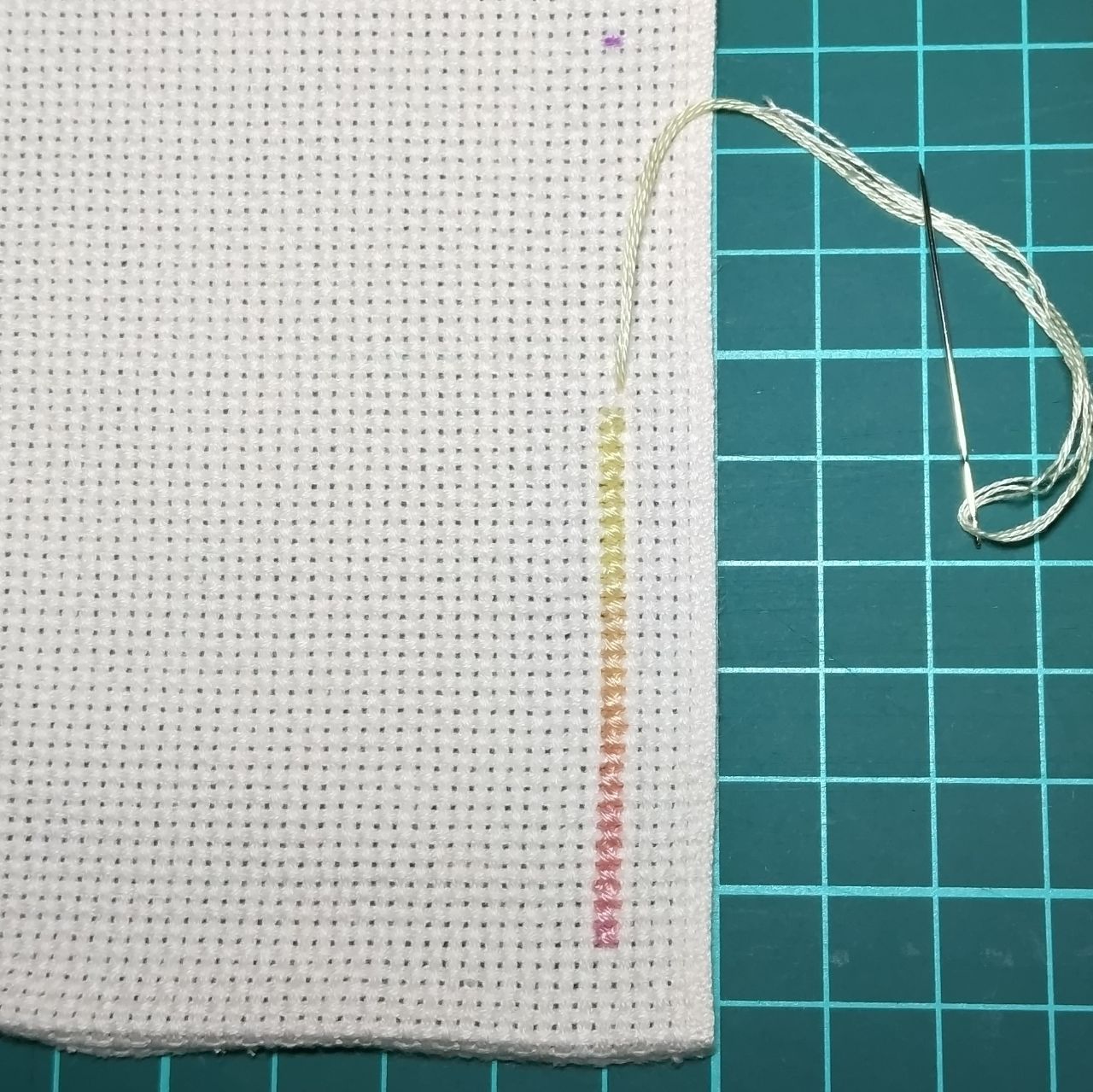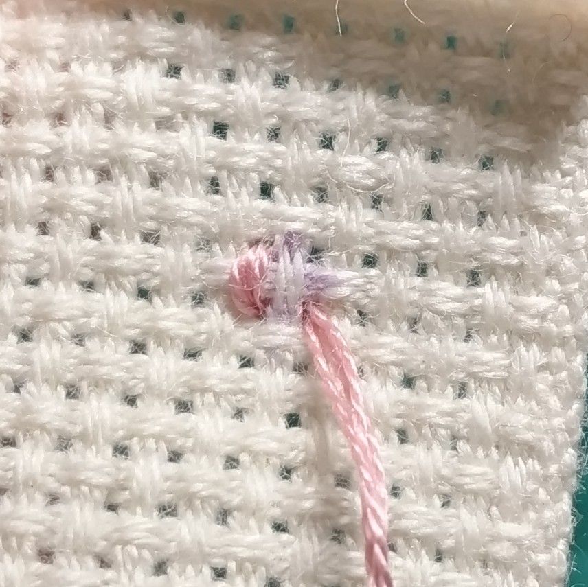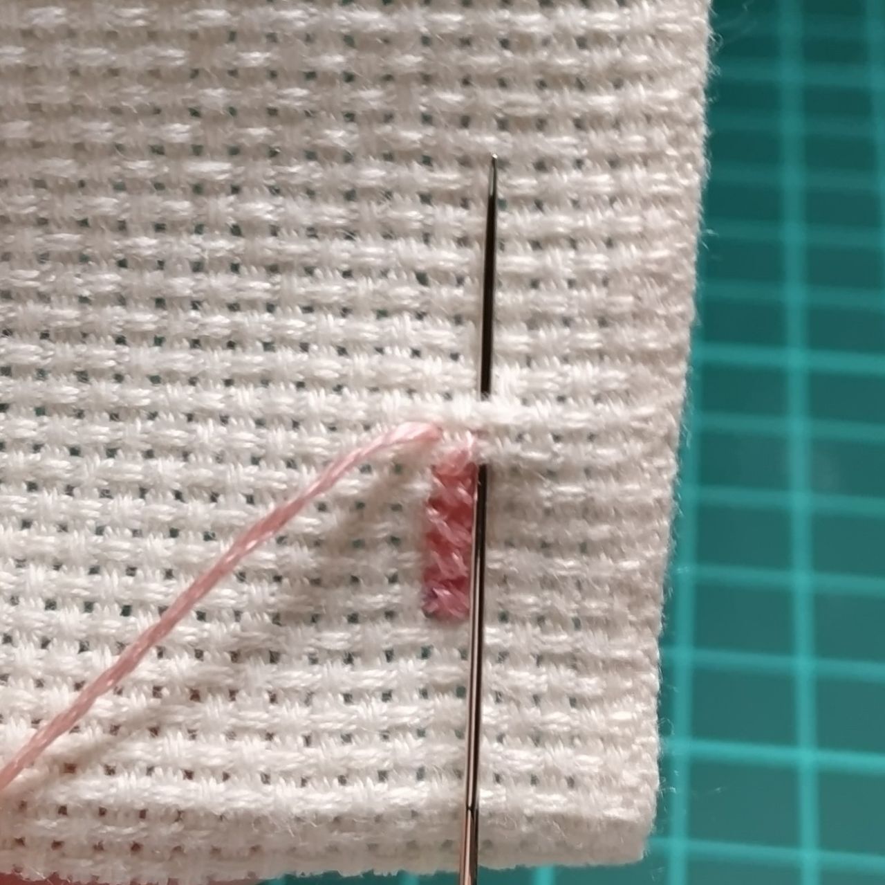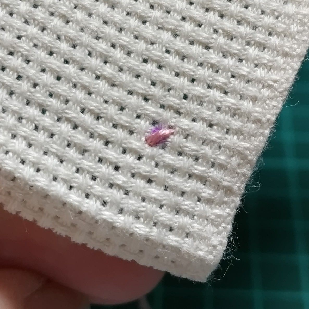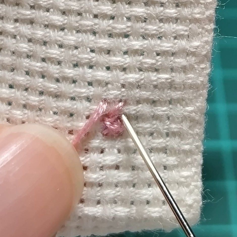 ちくちく進みまして、このあたりで糸が短くなりました。糸は約50cmありましたが、クロスステッチだとあっという間の長さでした。