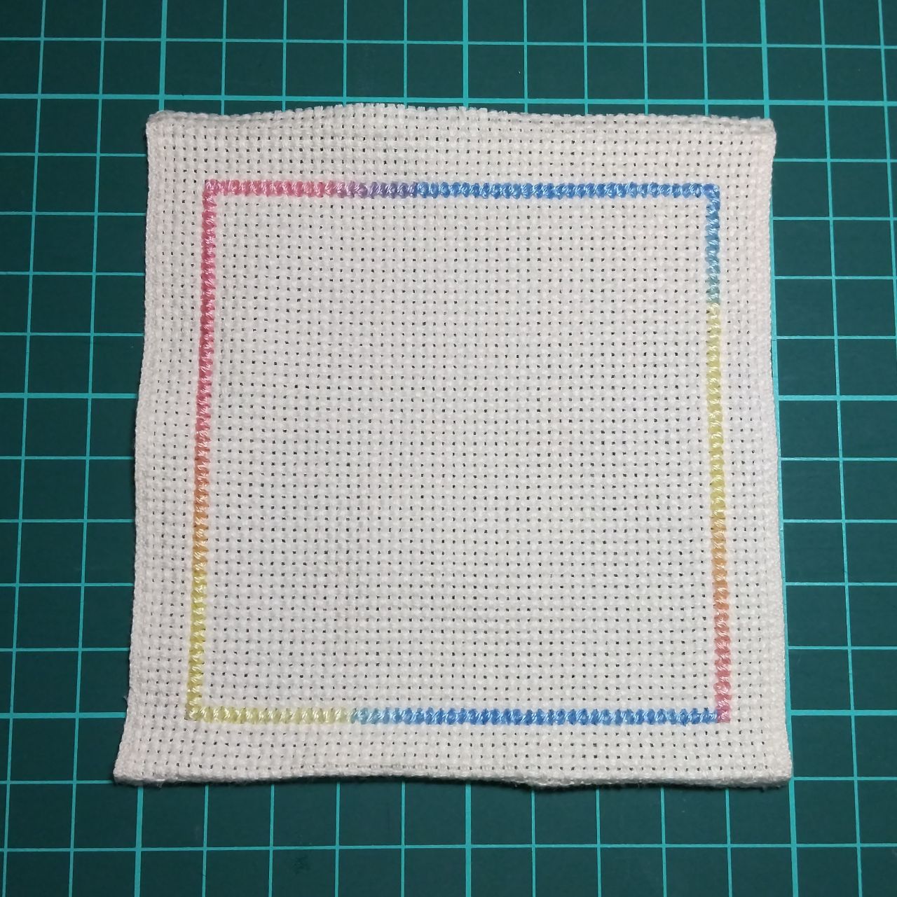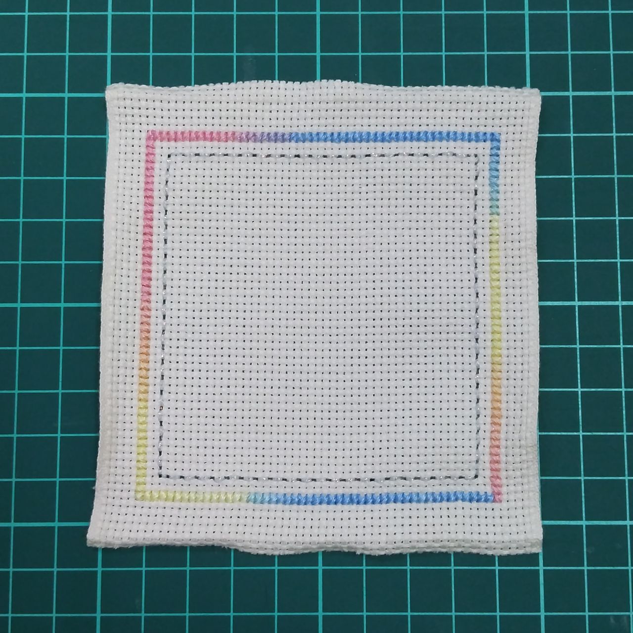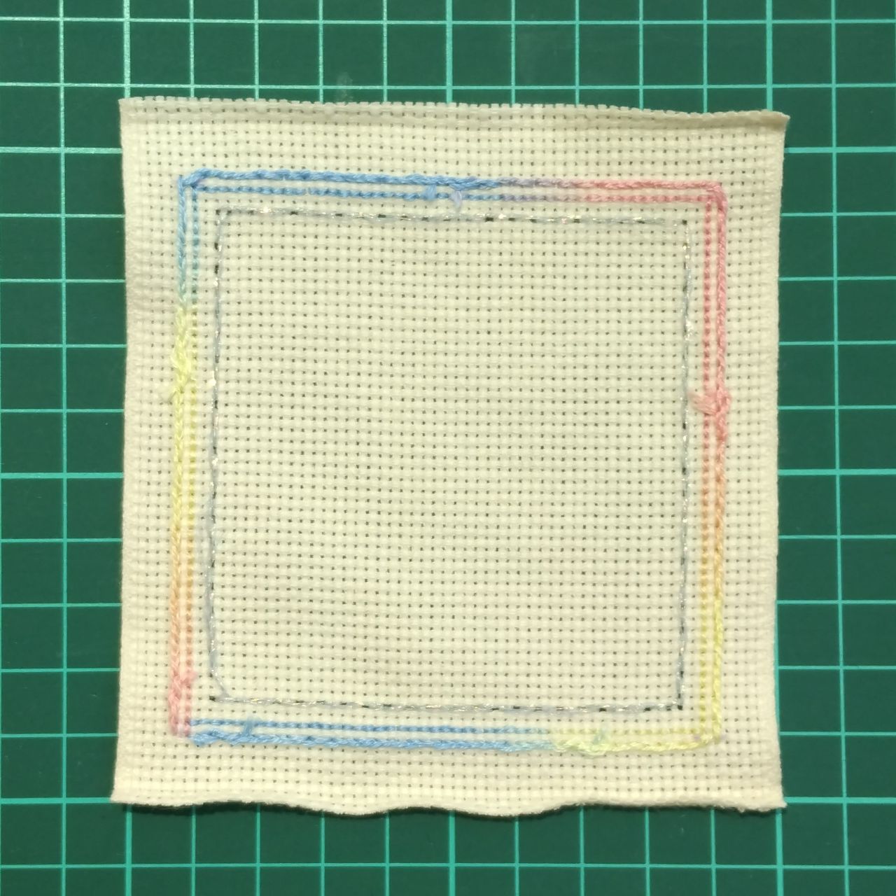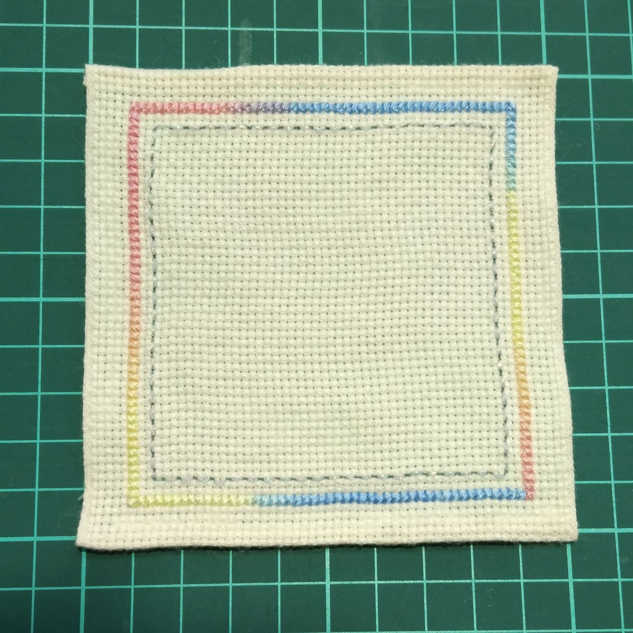 ステッチしたラインから2目分あけた内側にまた四角く刺していくのですが……