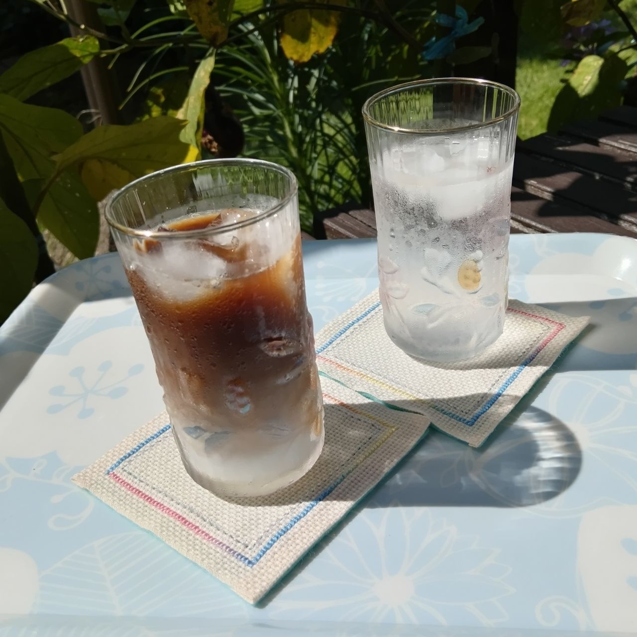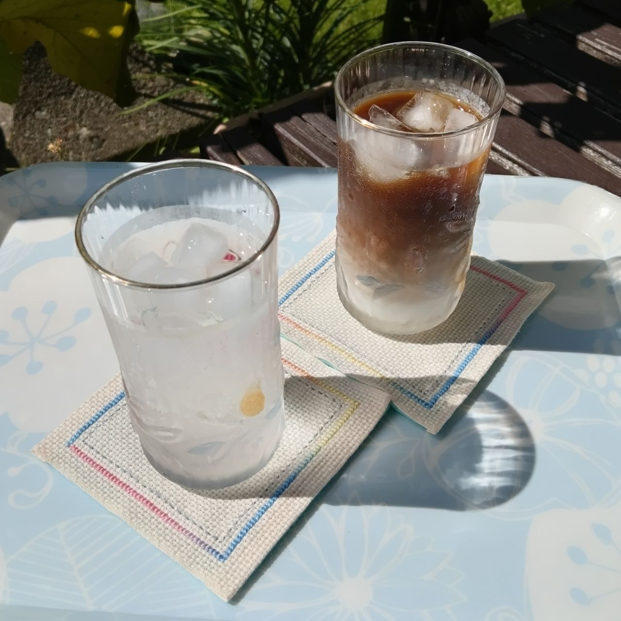 完成してからさっそく飲み物に敷いてみました(*´▽`)