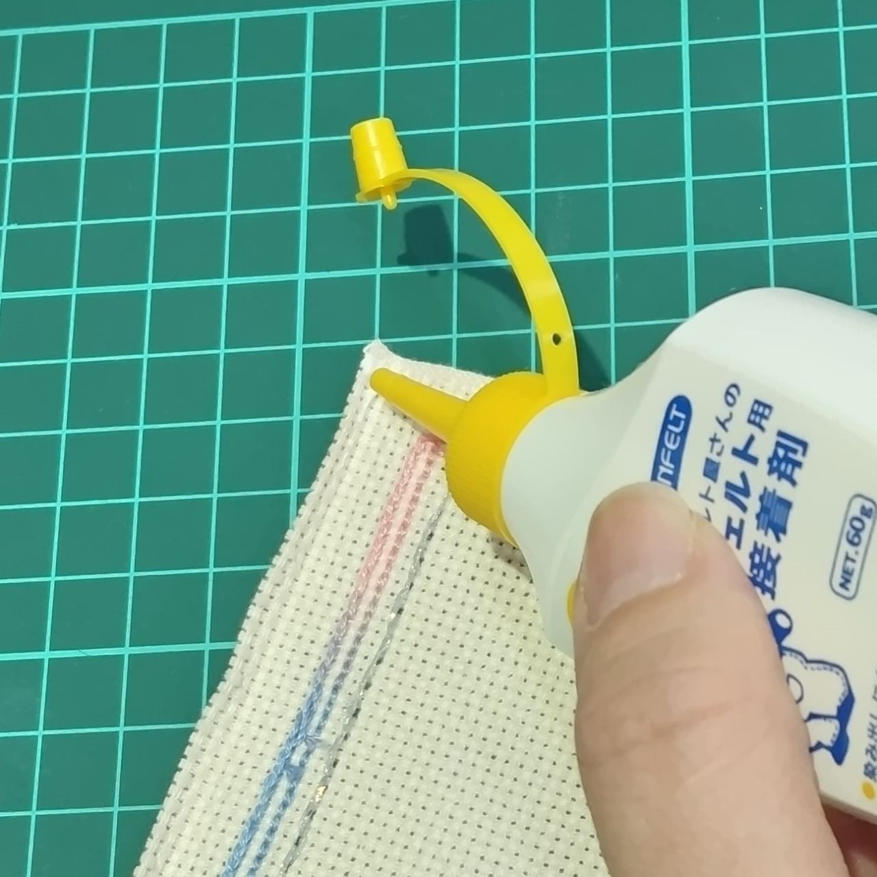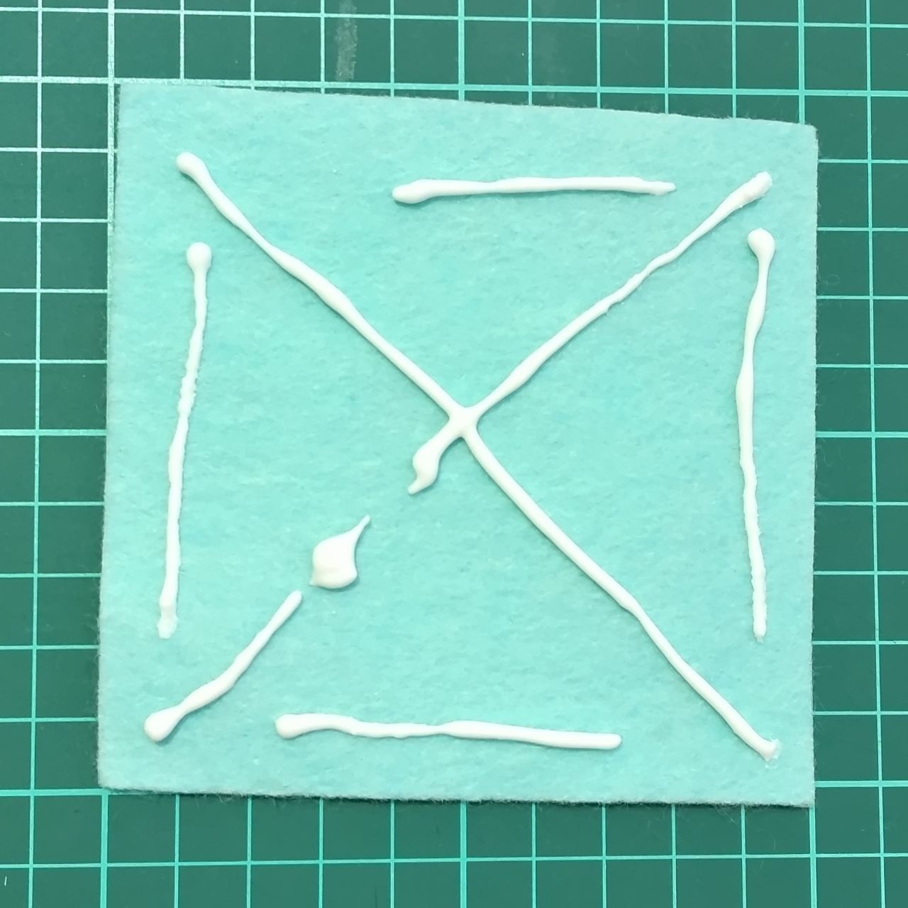 まずは折り込む部分にフェルト用ボンドを薄く塗り、先に付けてしまいます。