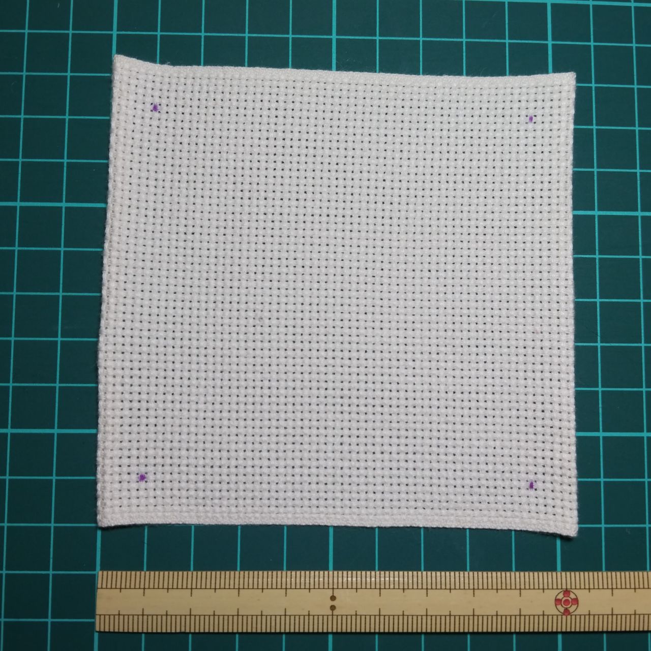 目安として、ステッチで48目×48目の正方形の枠(=4つのしるしをつなげたライン)を刺すイメージです。