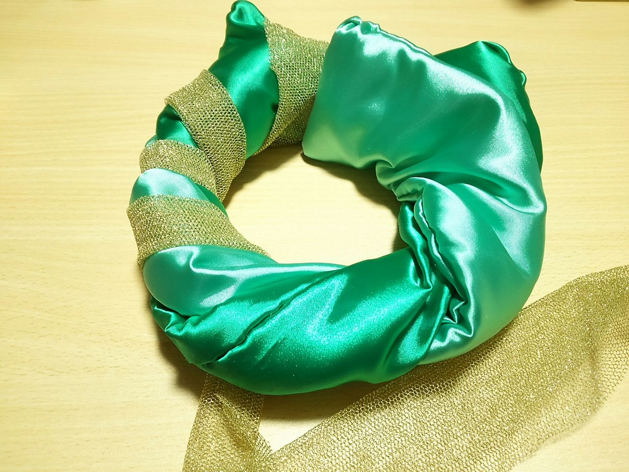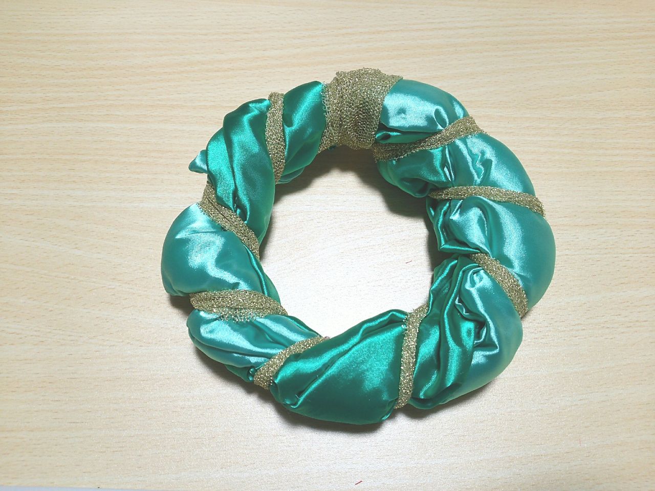 そこで、サテンの生地で、簡単なクリスマスリースを作ってみました(^o^)
