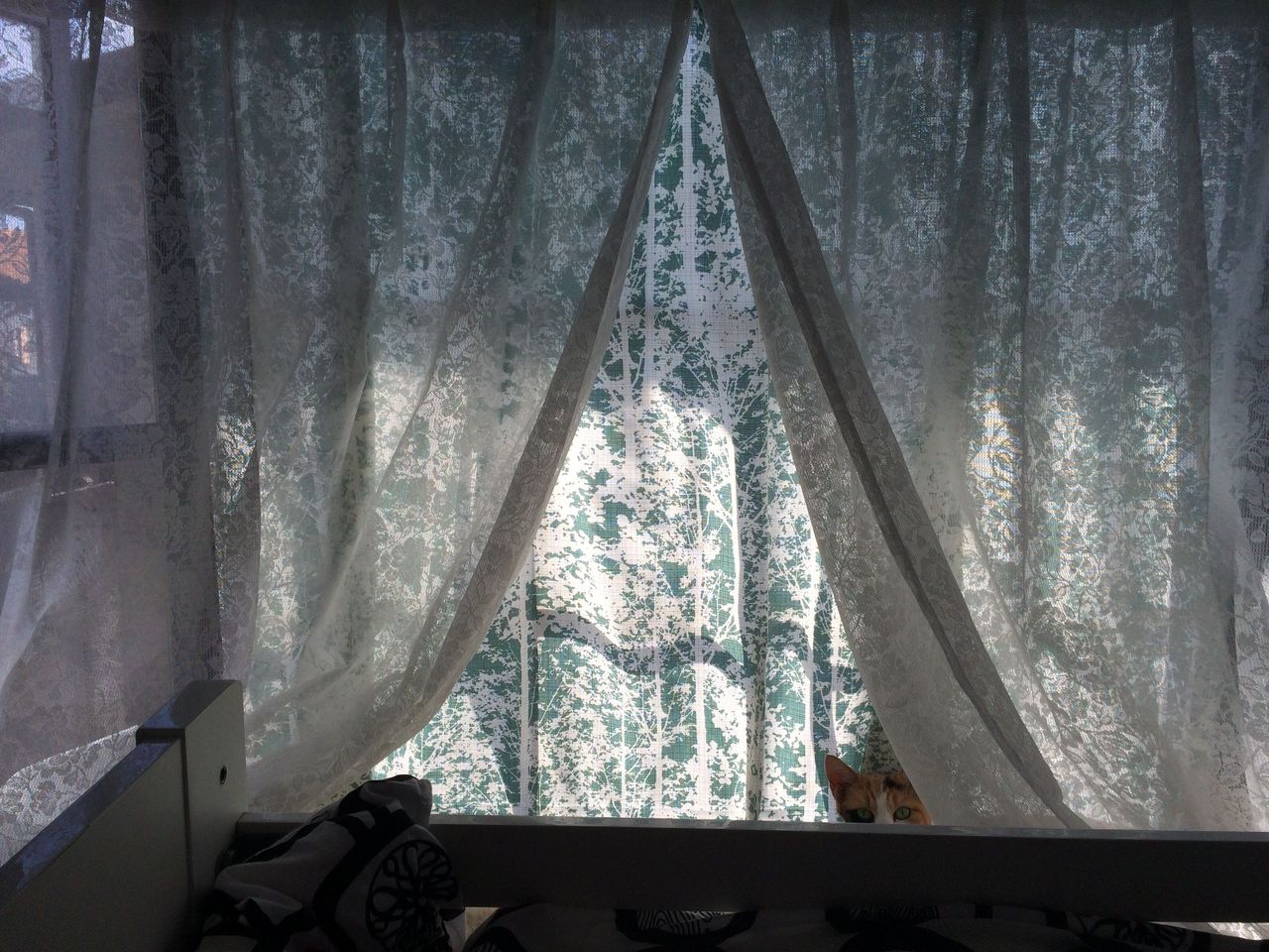 出窓も布で飾りました。猫のお気に入りの場所です。