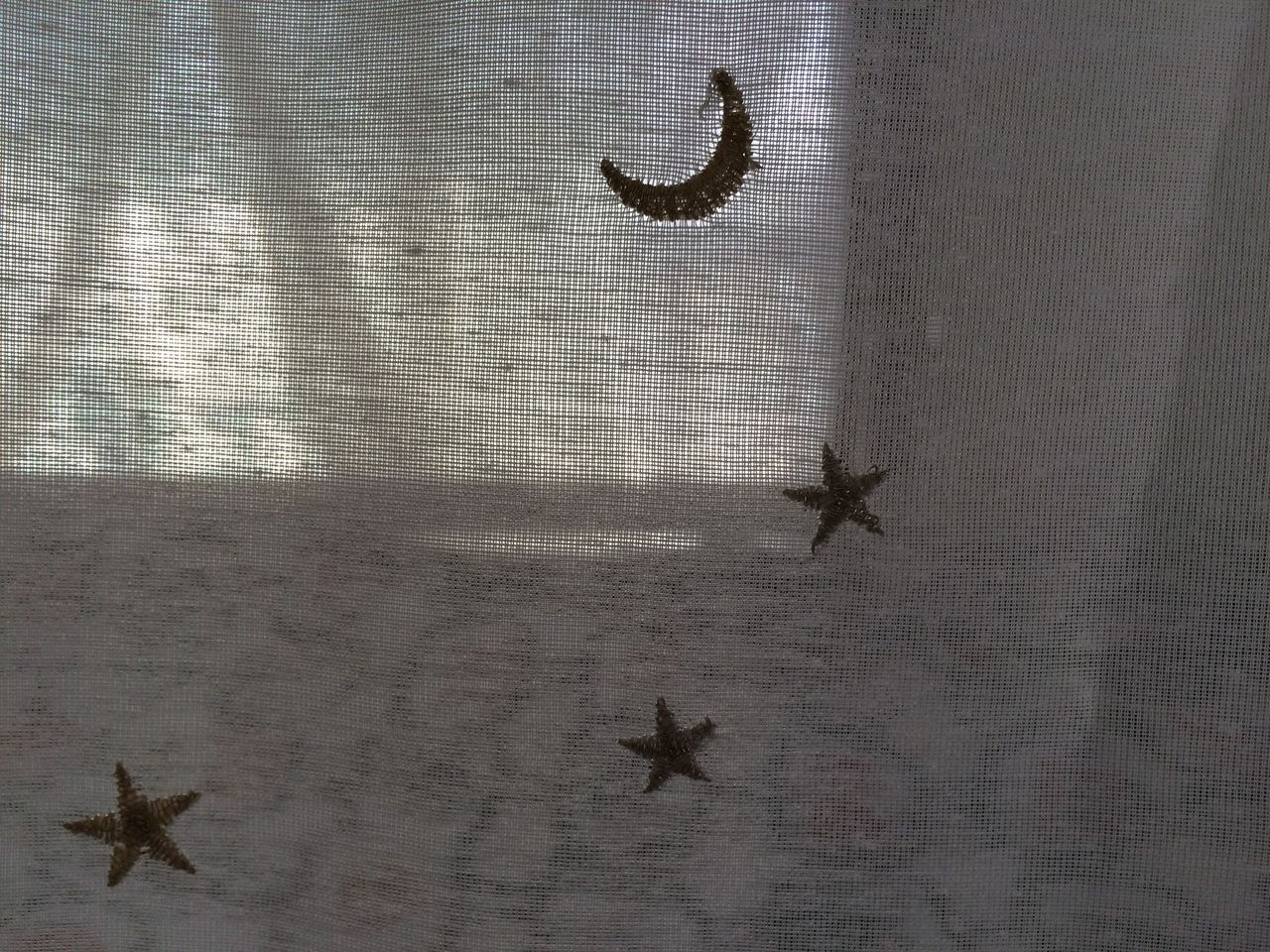 透け感のある白い生地には、お月様とお星様の金糸の刺繍が散りばめられています。