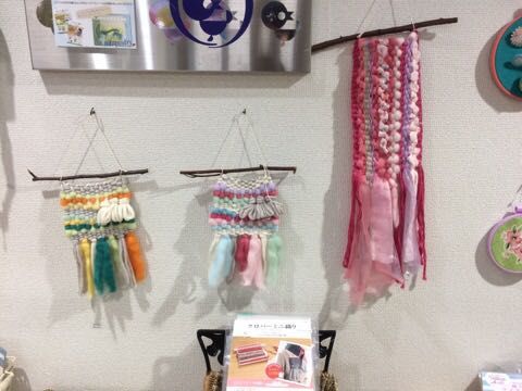 ミニ織り機を使い、毛糸やリボンをランダムに織り込んでみたり!
