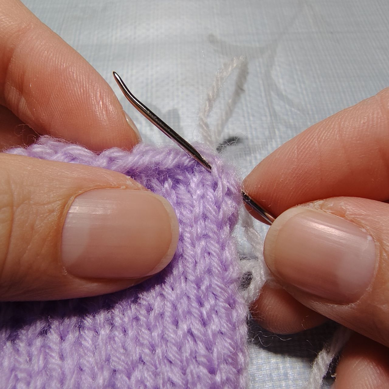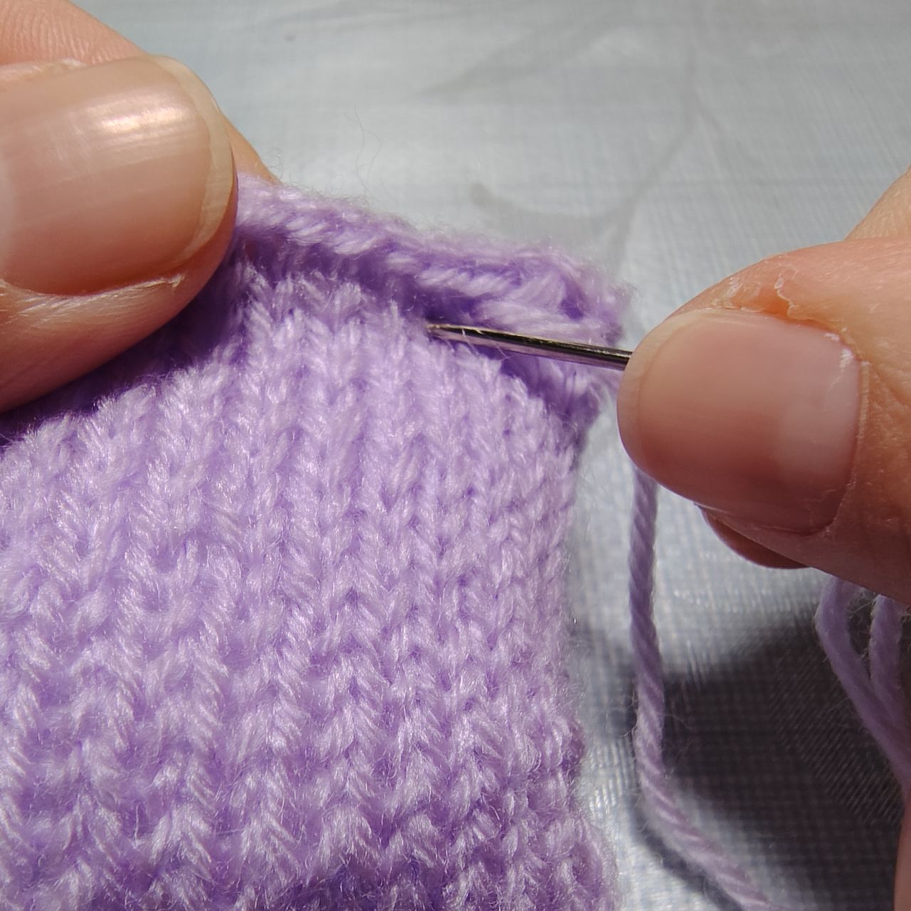 始めと終わりの糸端をそれぞれ編み地にくぐらせて隠します。