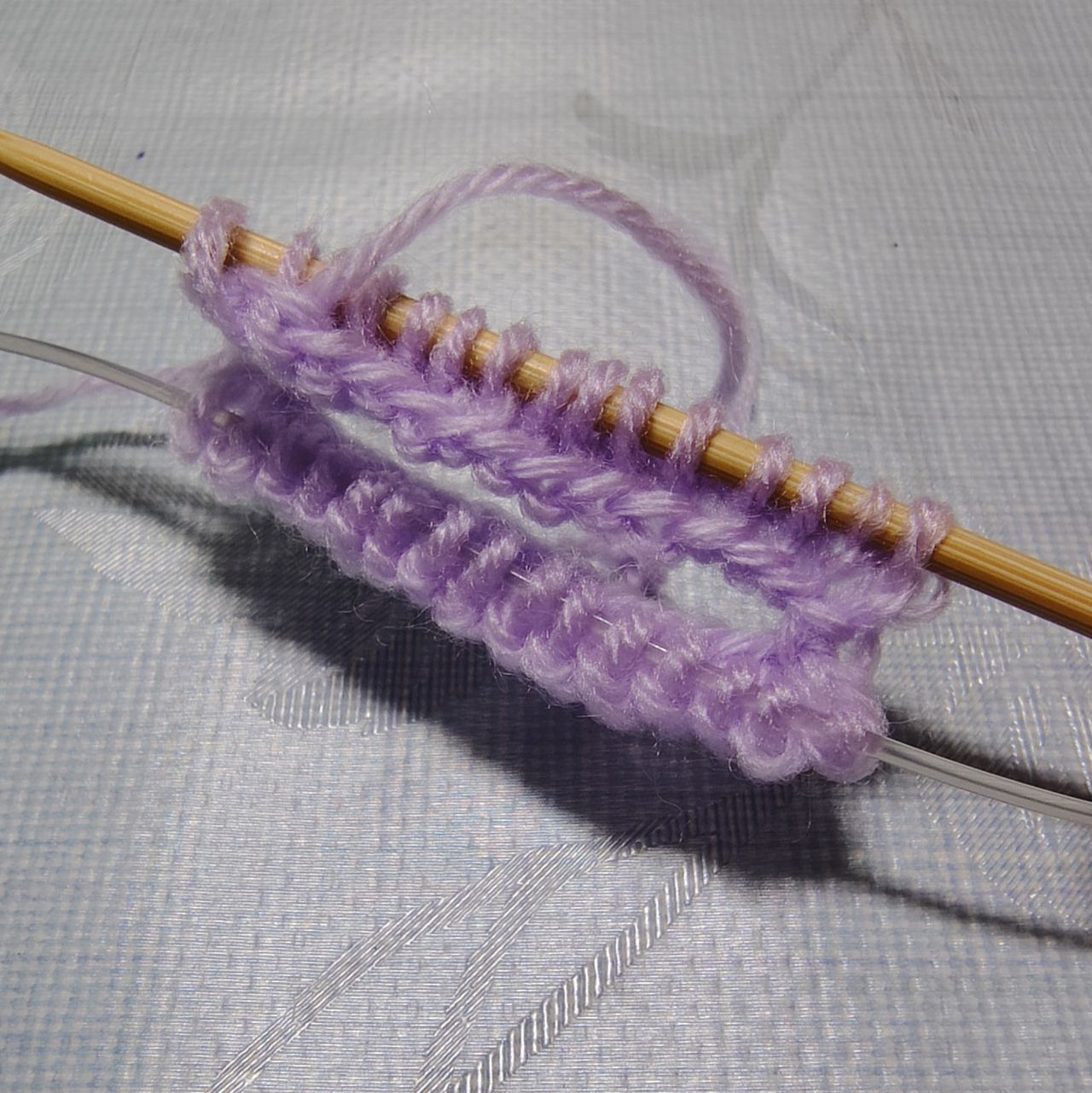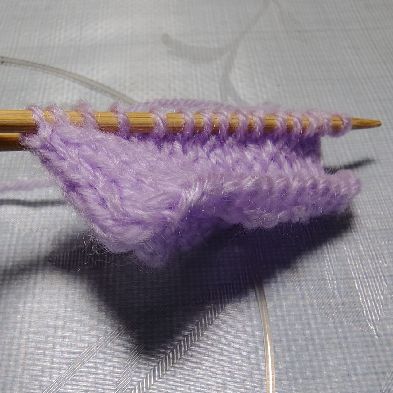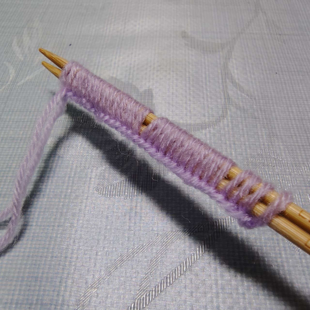④メリヤス編みで20段編む