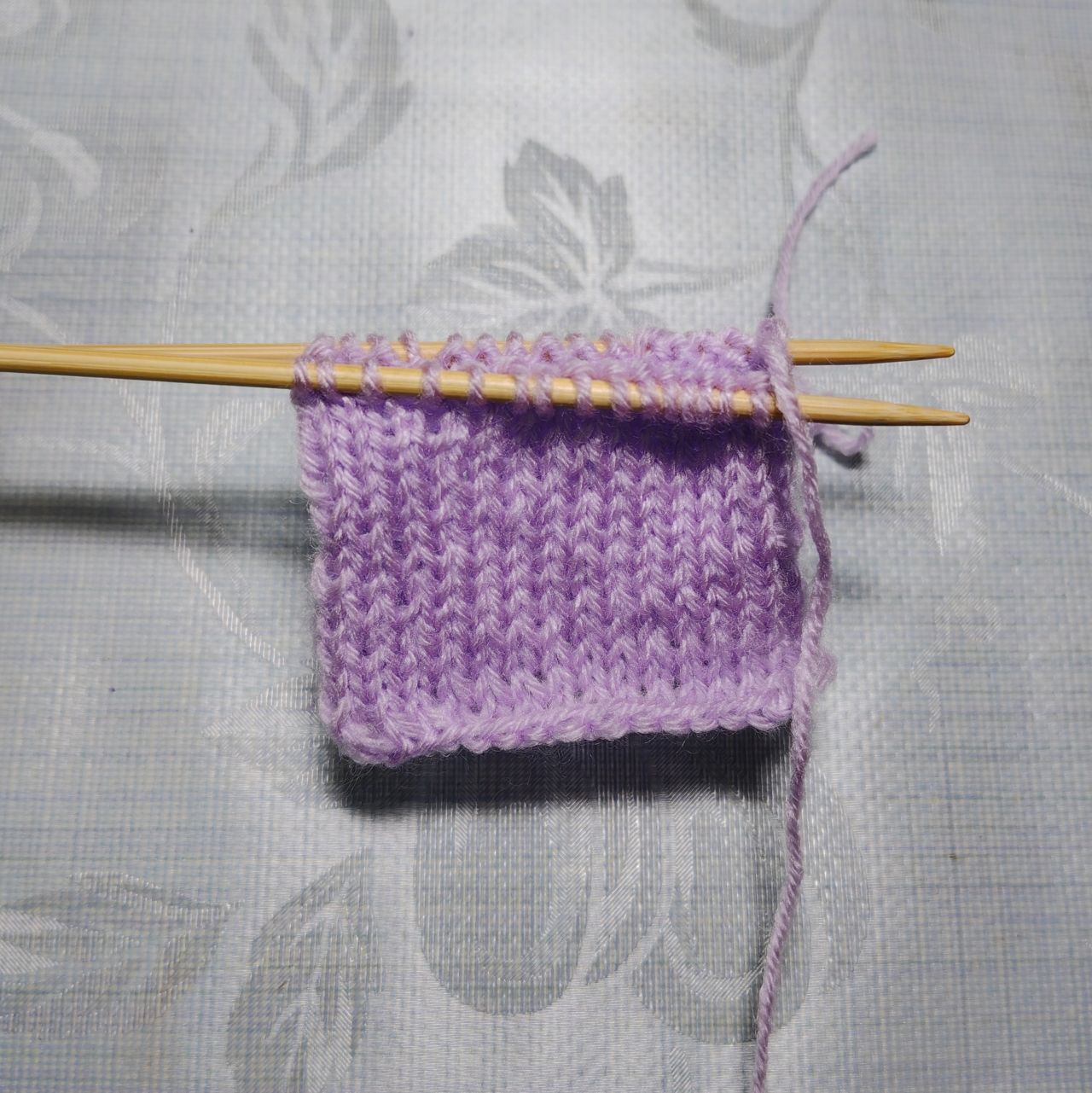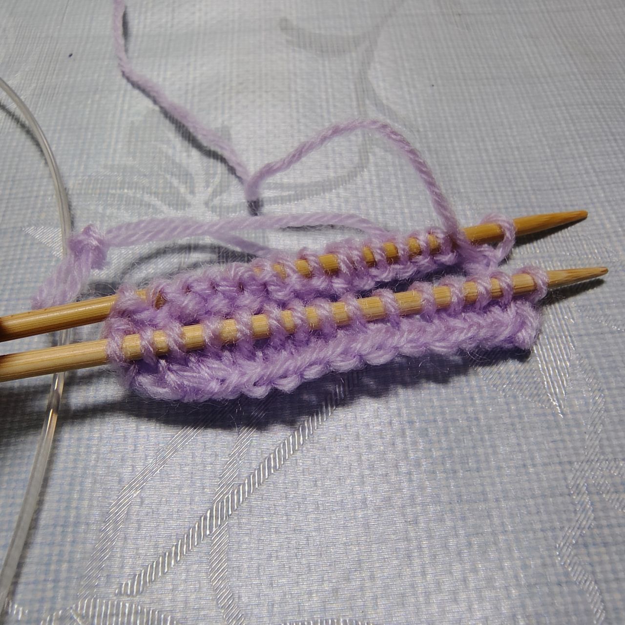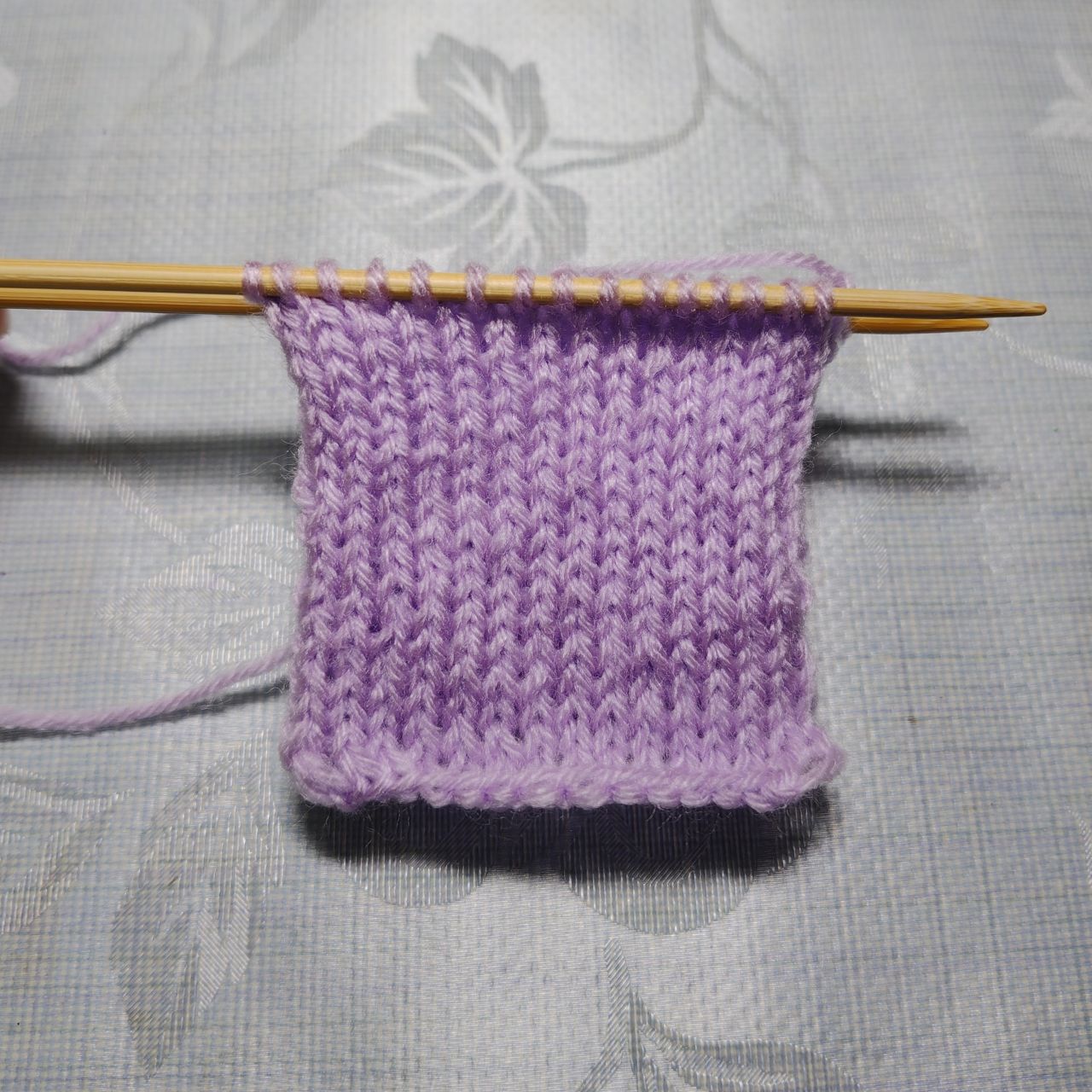 ④メリヤス編みで20段編む