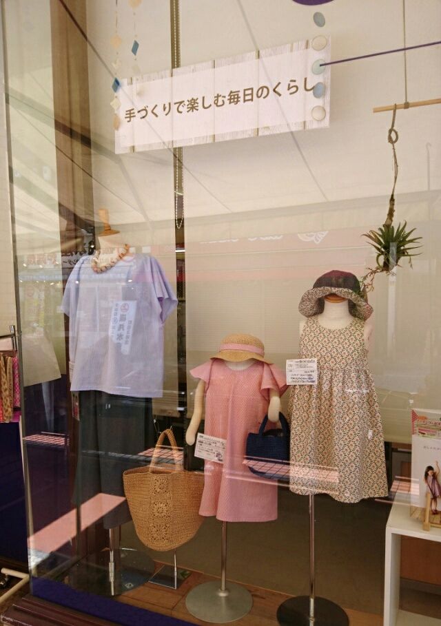 をテーマにスタッフが製作した服をディスプレイ中♪