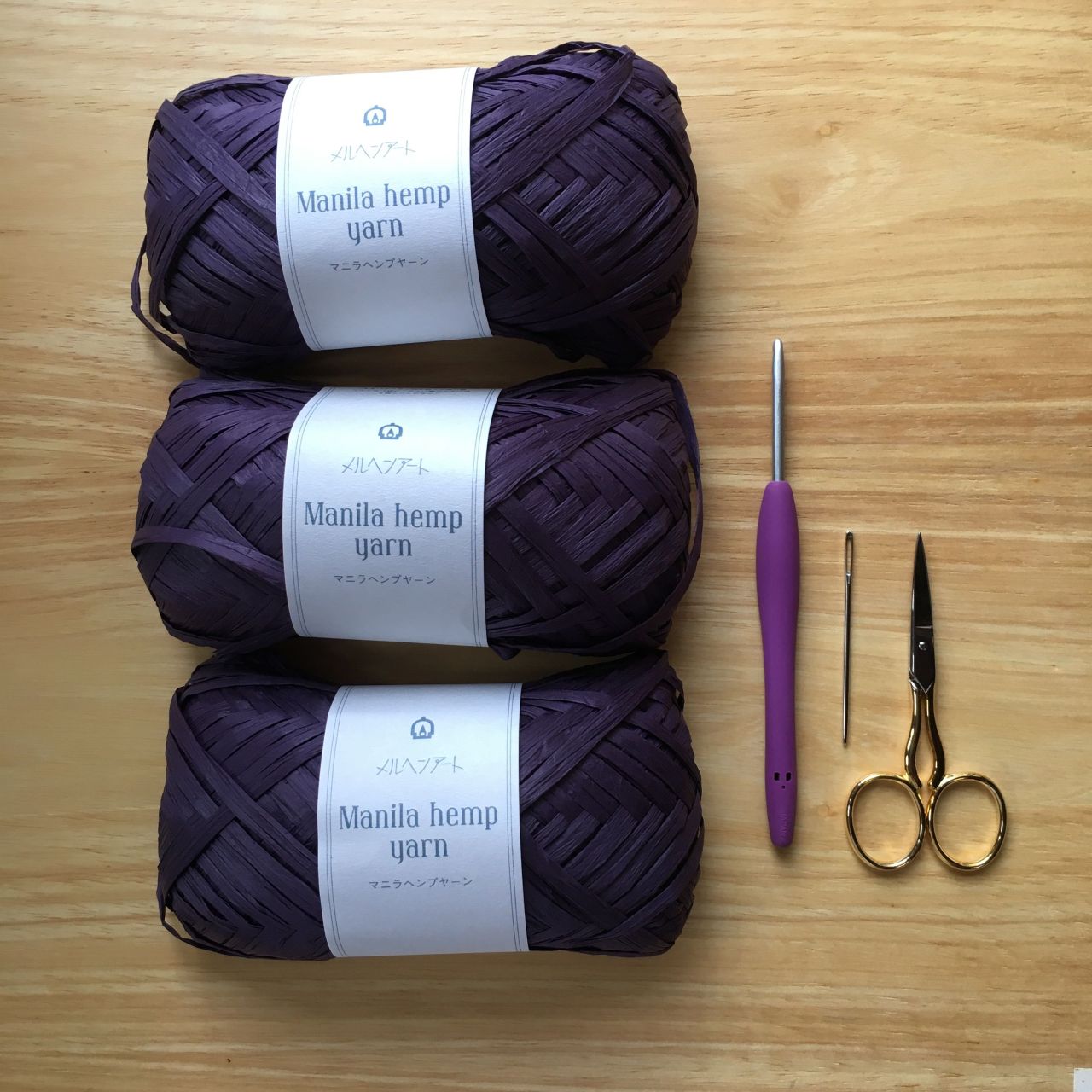 秋も、マニラヘンプヤーンが素敵です。3玉でつくれるバックはいかがですか?