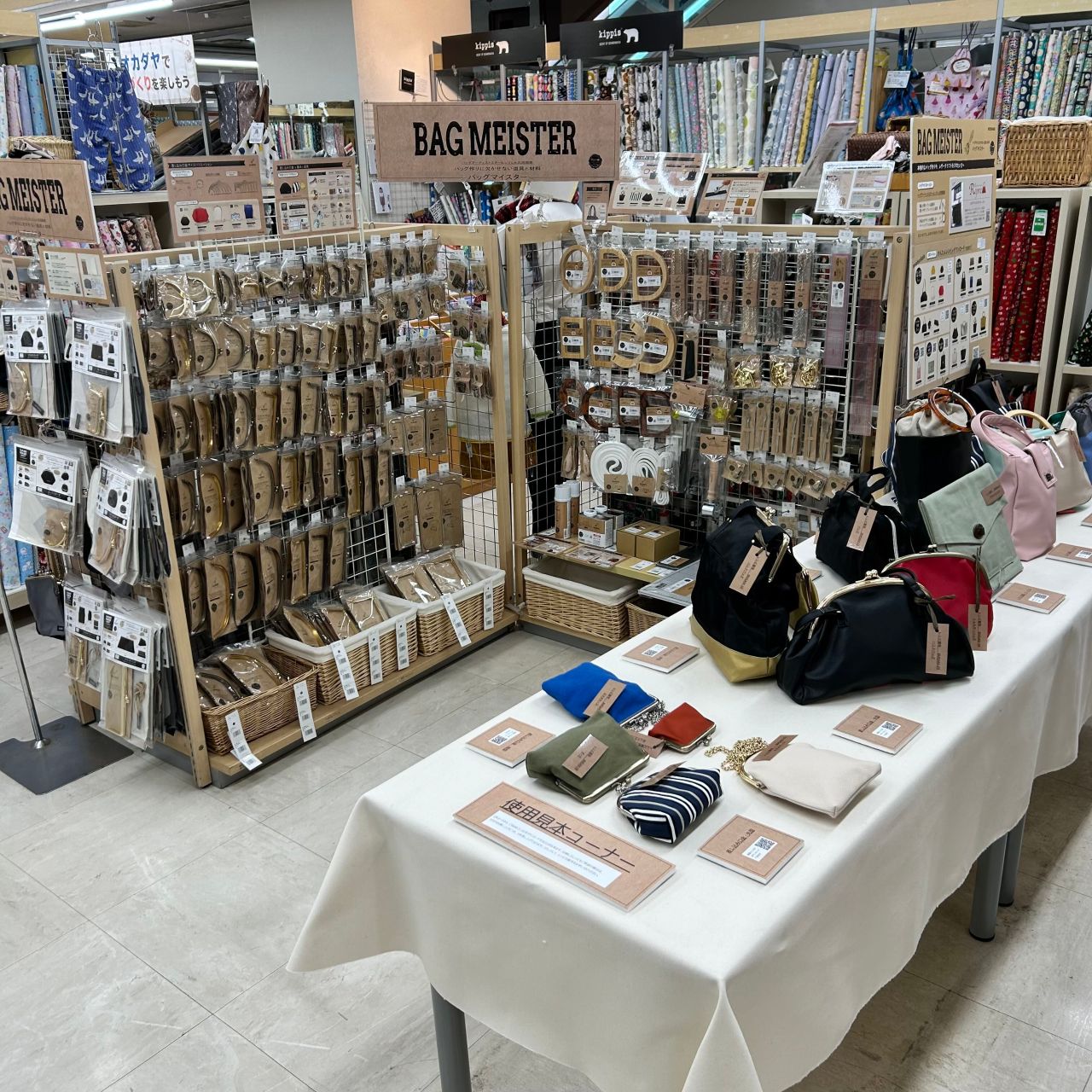 本日は1Fにてスタートしたバッグ材料のPOPUP、「BAG MEISTER(バッグマイスター)」コーナーのご紹介です!