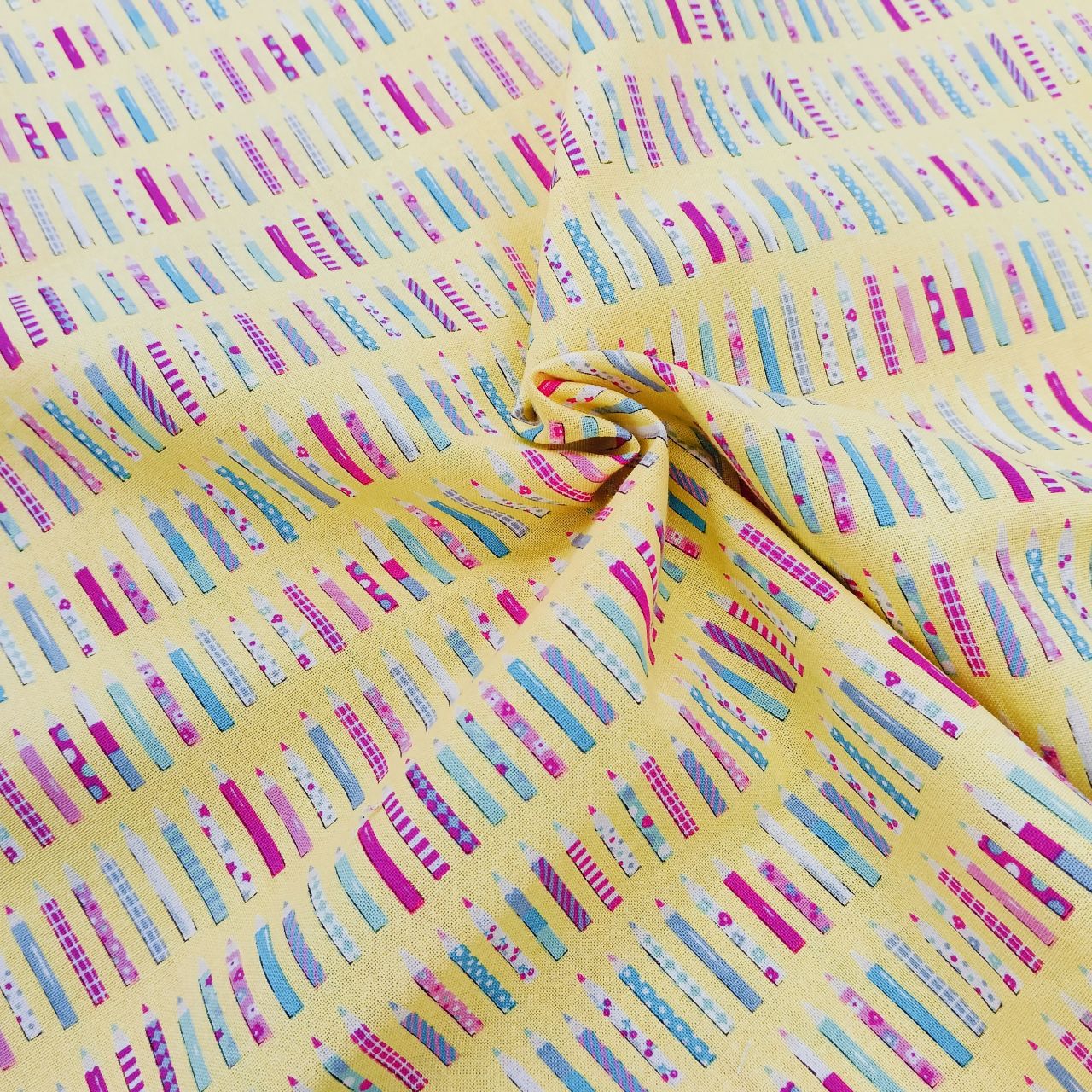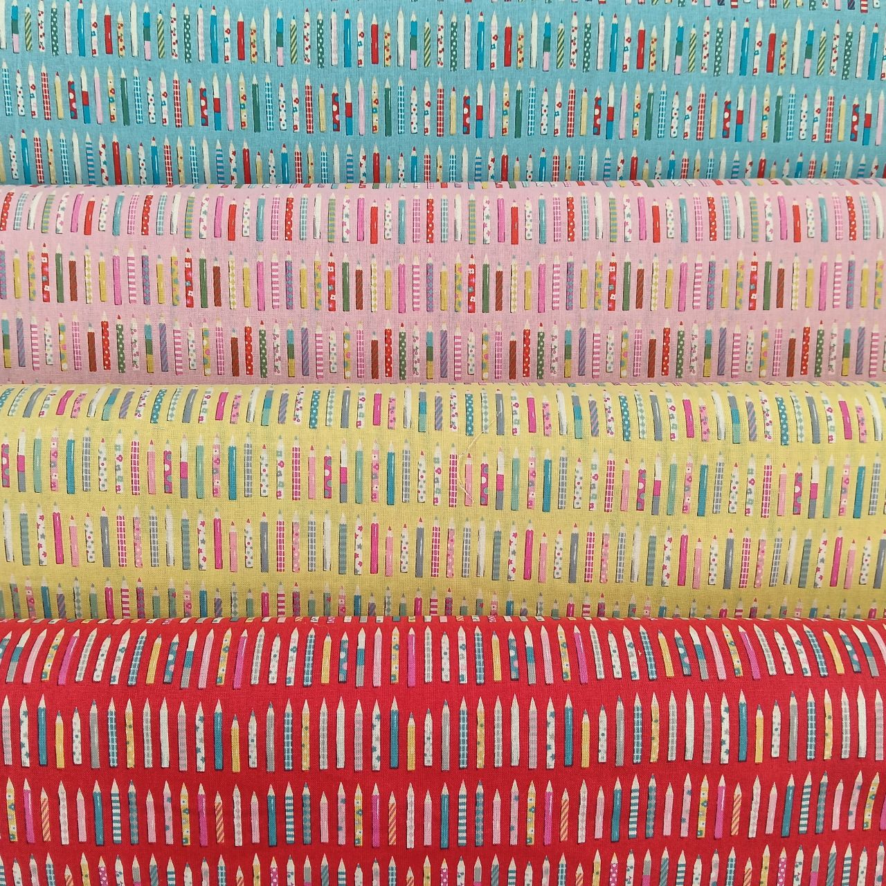 カラフルで楽しい柄の色えんぴつが並んだ柄です♪