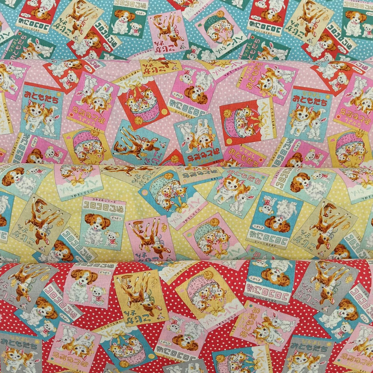 愛らしいお顔の動物さんたちが描かれた絵本の柄です♪