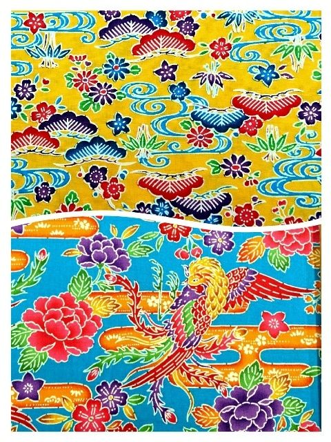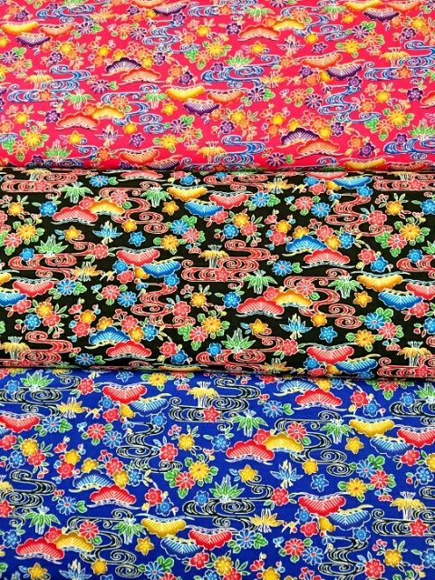 カラフルな紅型風 コットン生地を2柄ご紹介します。