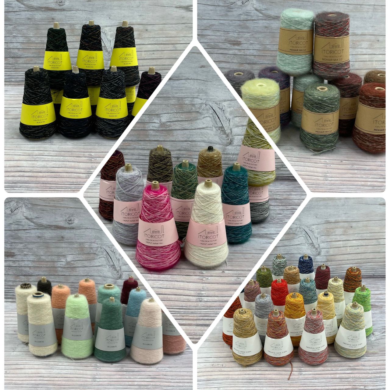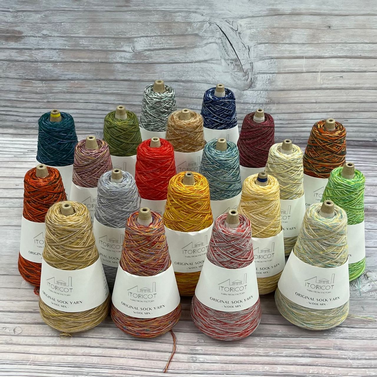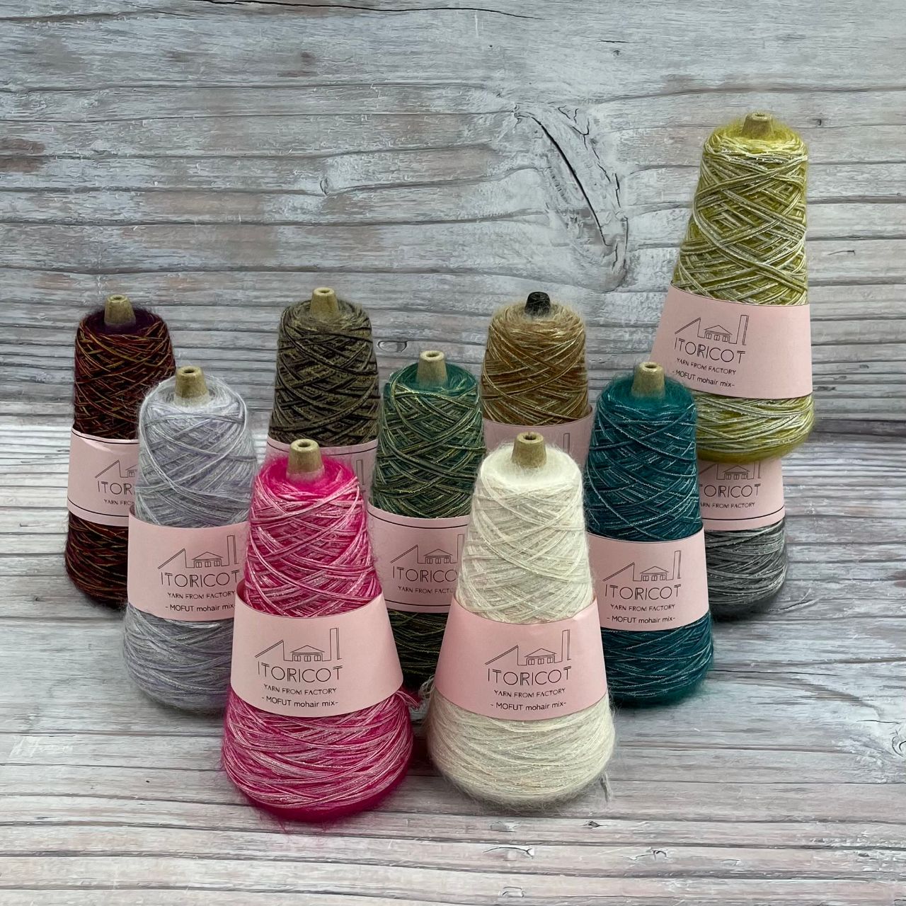 こちらの毛糸は、靴下工場の余っている糸を合わせて作られてます。モヘアMIXも、色とりどりのモヘアやウールを合わせて紡がれた毛糸の為、『一期一会の毛糸』です。