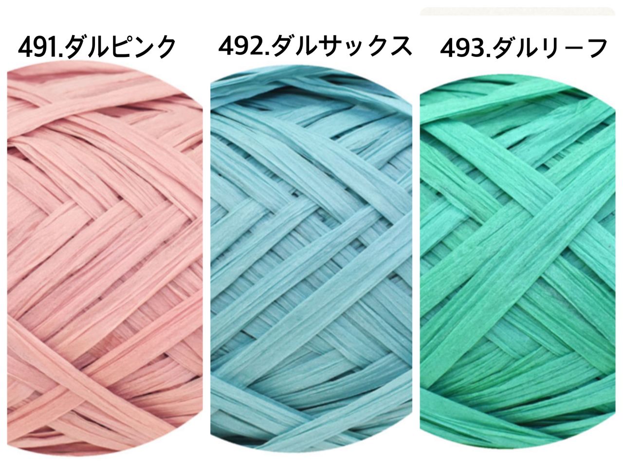 くすみ系の、ピンク、ブルー、グリーンの3色です。単色でも、ナチュラルな色と組み合わせても可愛いですね。