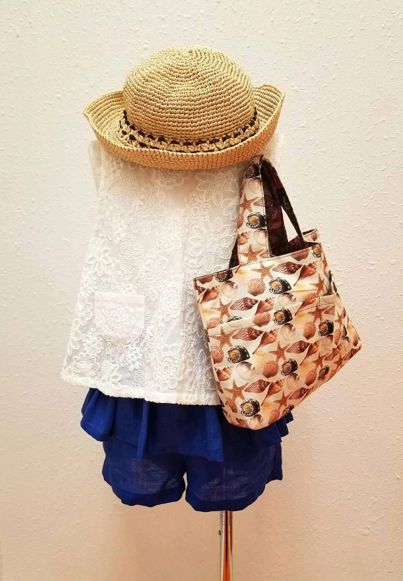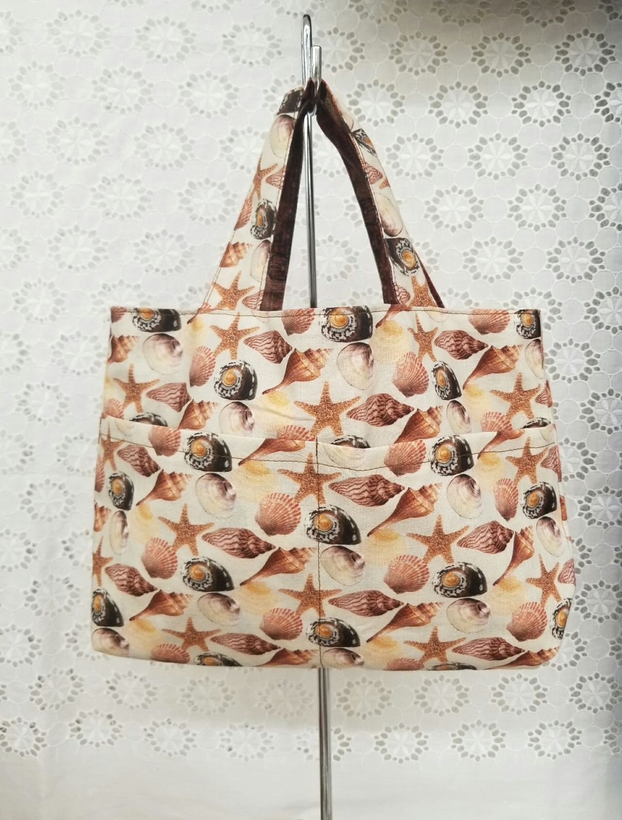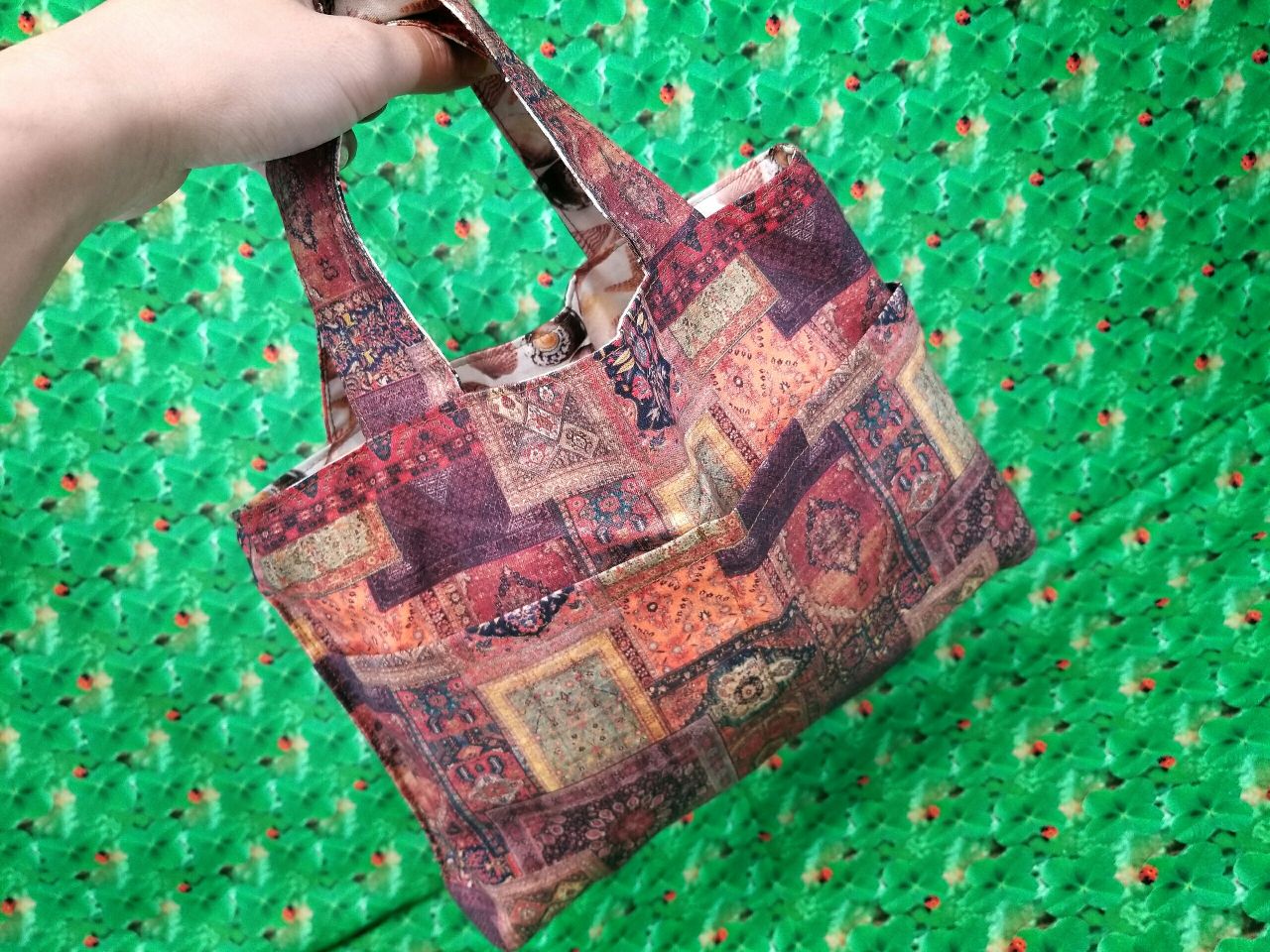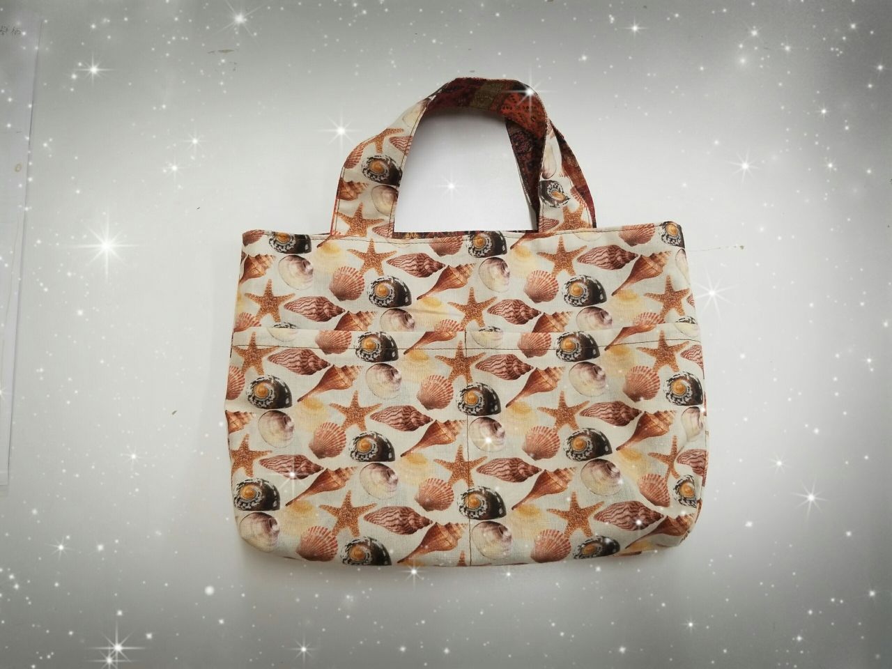 脇から6cmのところ持ち手を挟んで、口をぐるっと縫います。