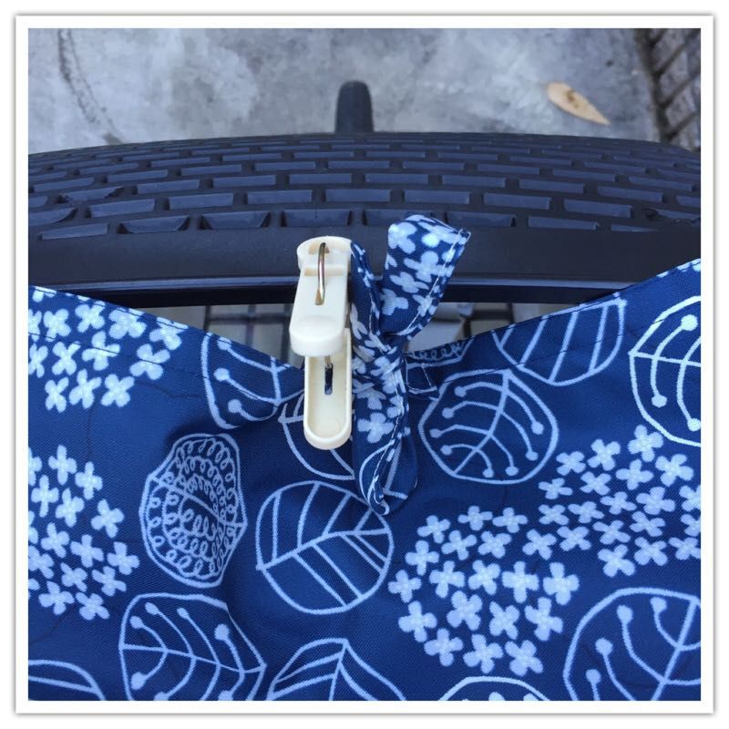 自転車のカゴにくくりつけることが出来るので・・・・・