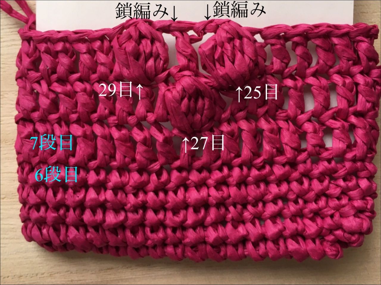 チェーンは編み目を拾って掛けてくださいね。洋服の様に、その日の気分で色違いを作ってお楽しみ下さい。