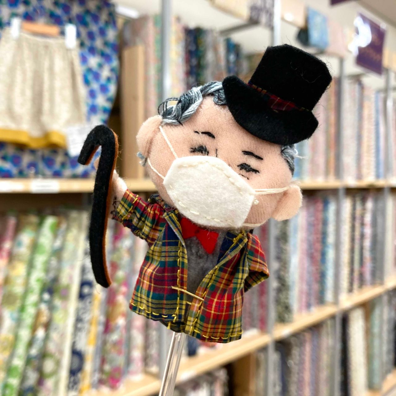 店長のマスコットも、リバティプリントのお洋服を着てます♪