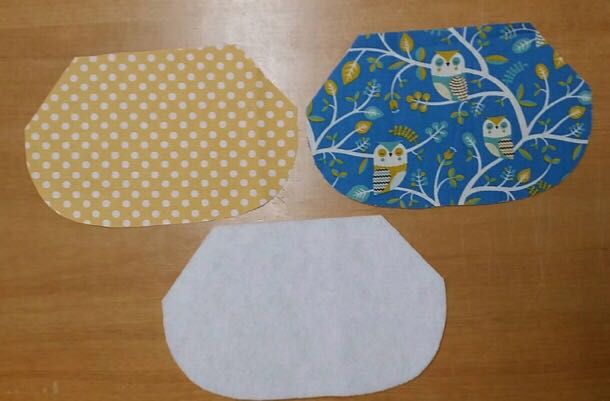 ①表地、裏地、キルト芯を裁断します。