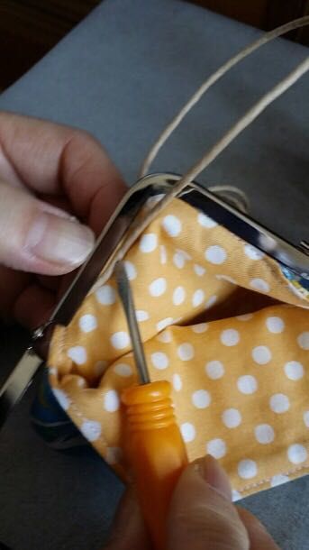 (口金を傷つけないように、当て布をして押さえます。)