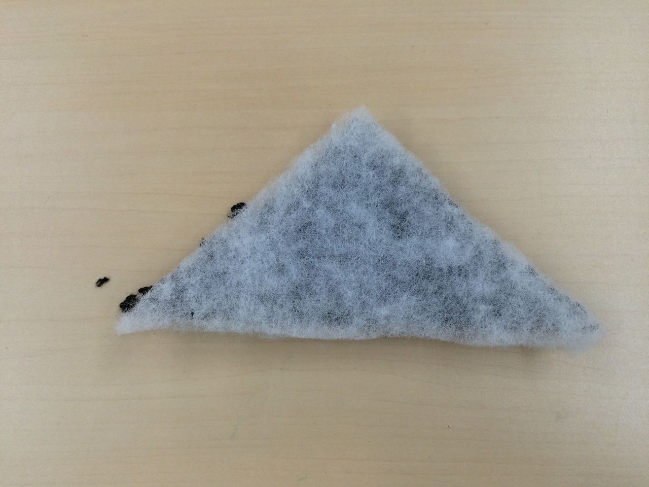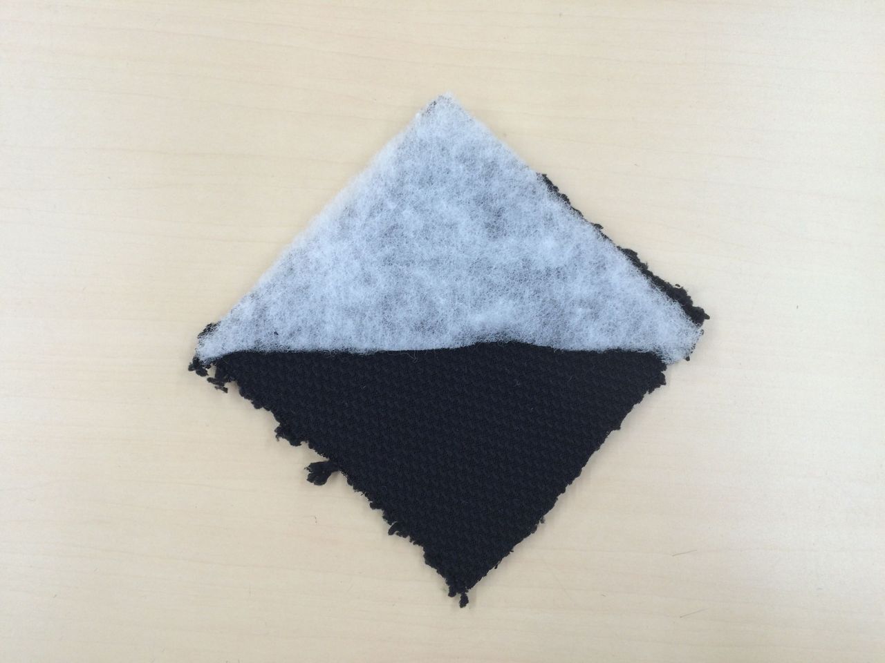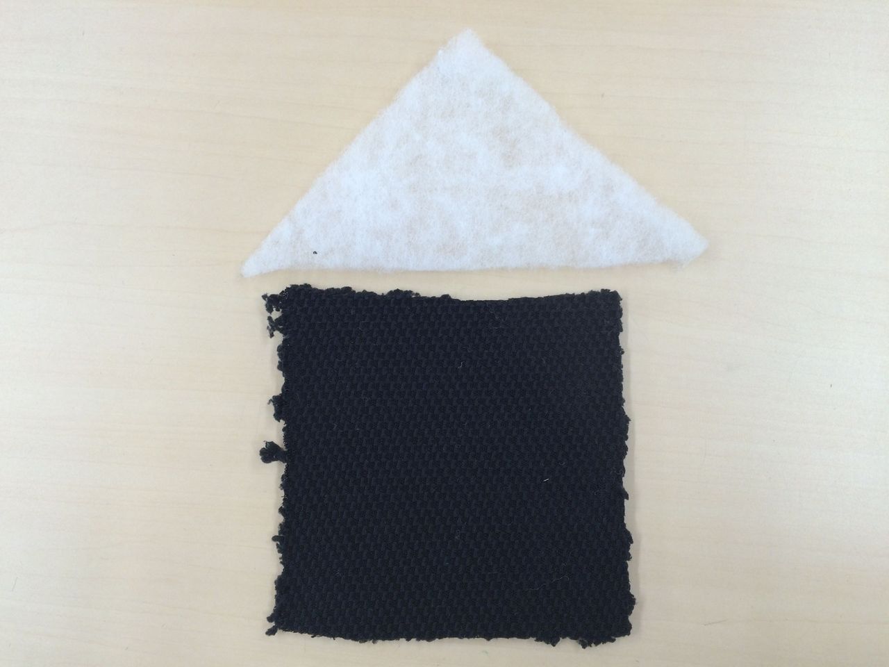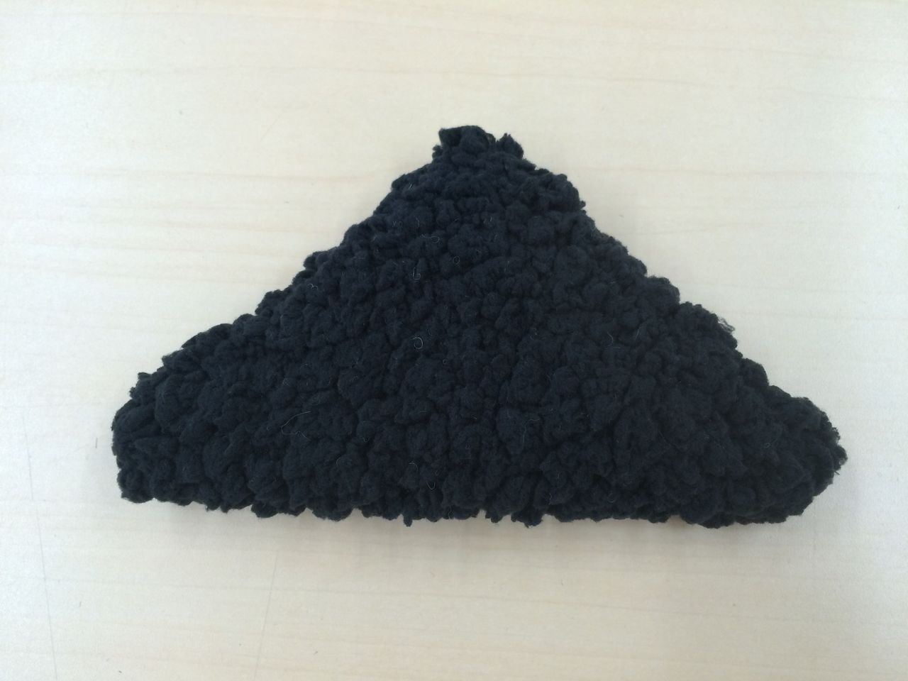 ③あいているところから表に返し、三角形を整えて、返し口を縫ってふさぎます。黒はんぺんのようですね