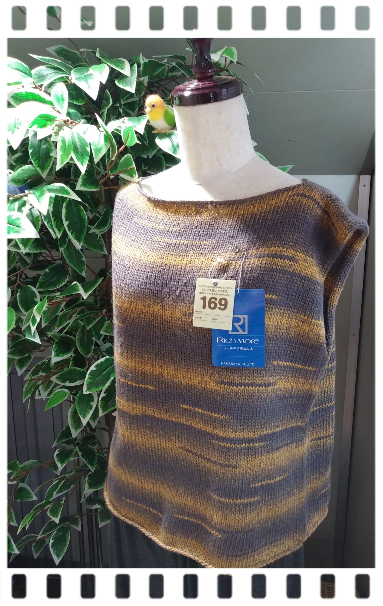 真っ直ぐに編んで、肩と脇をはぐシンプルな形なので編み物初めてさんにオススメです。