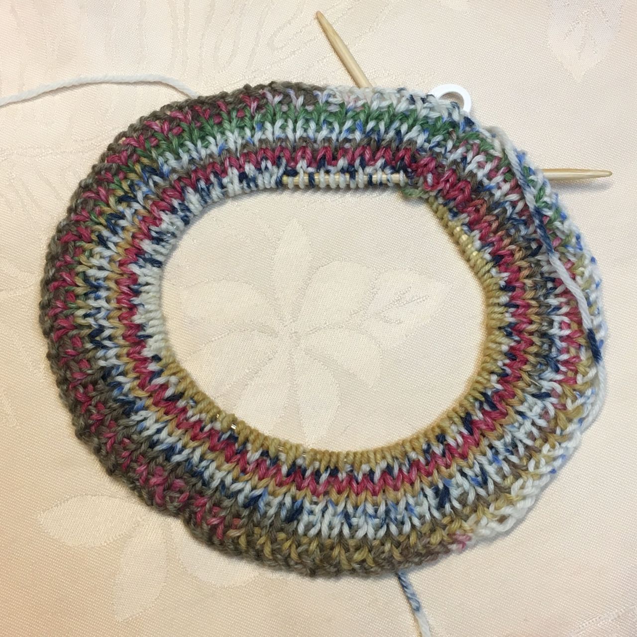 5号の輪針に今回は、マルティナさんオススメの作り目で126目作りました。普通の作り目でも、大丈夫です。