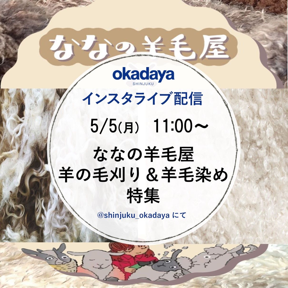 『ななの羊毛屋✖︎okadaya町田店 羊の毛刈り&羊毛染め体験』インスタライブ