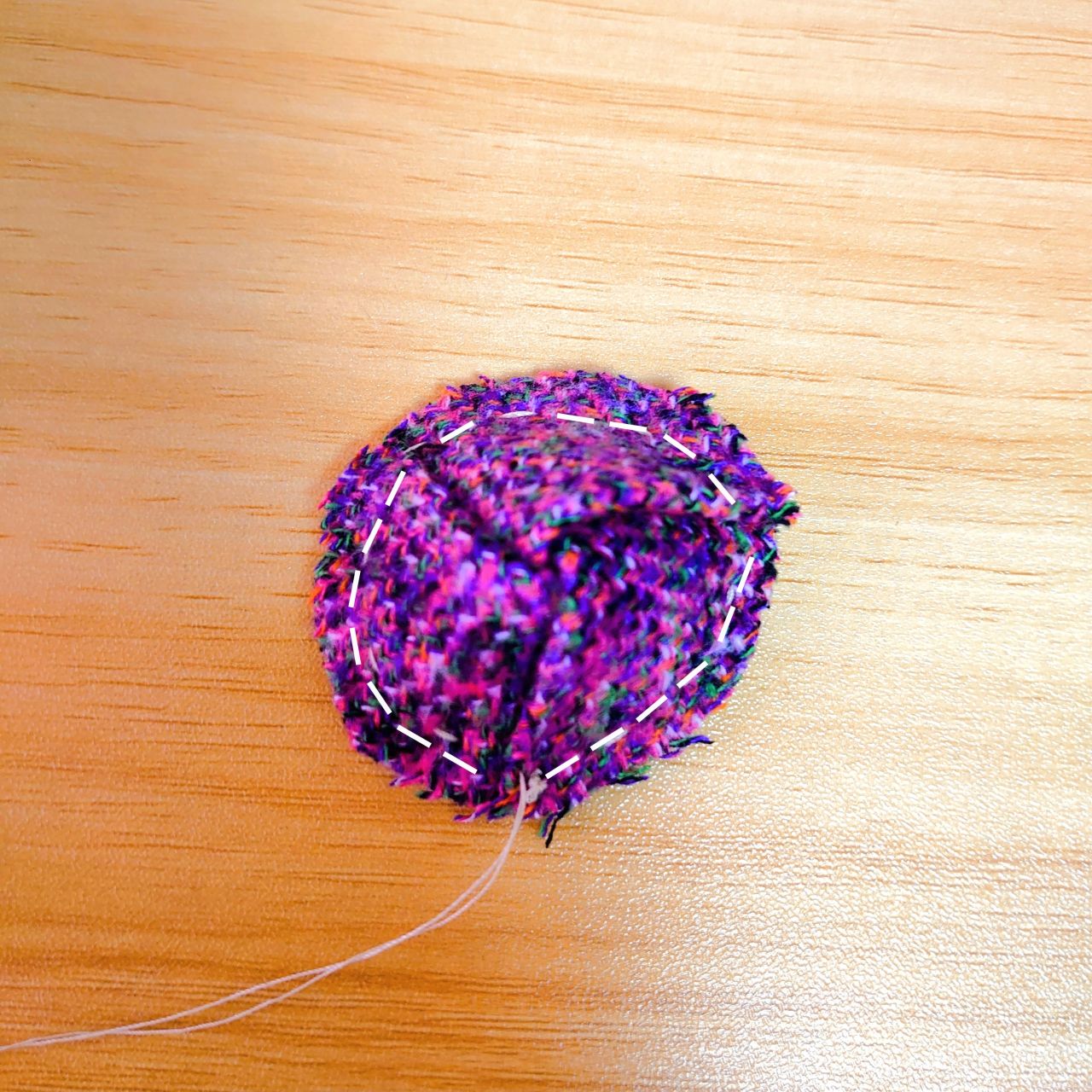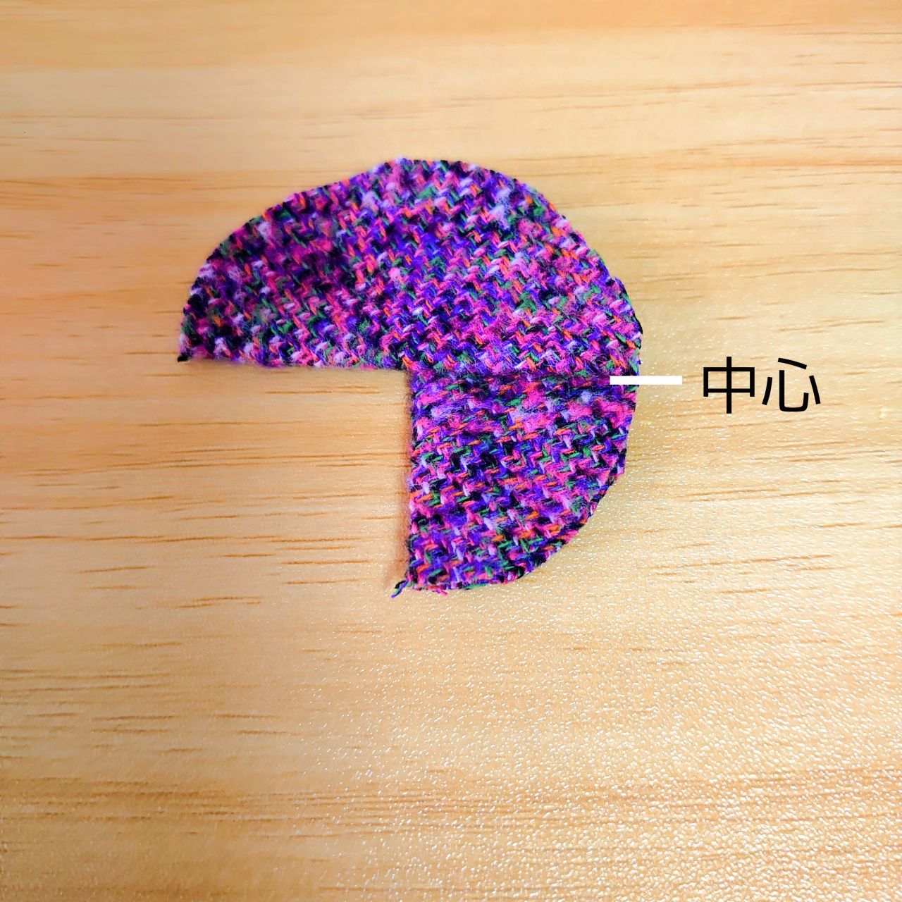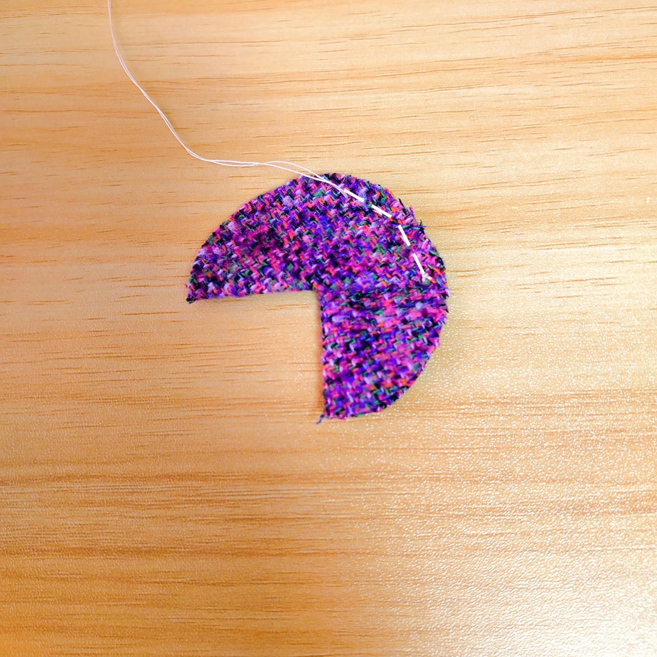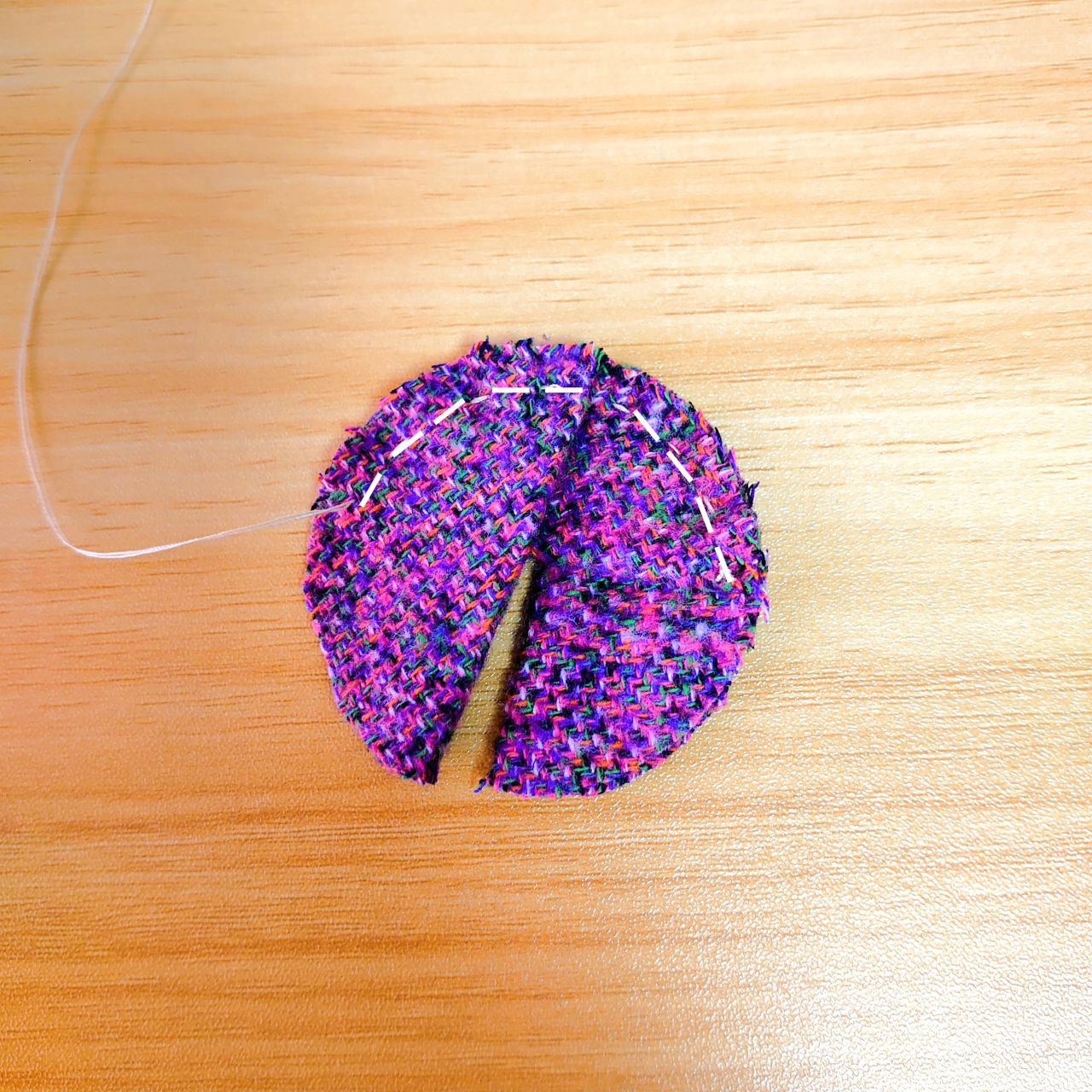 もう1枚折った生地を中心に重ねて糸で縫いとめます。
