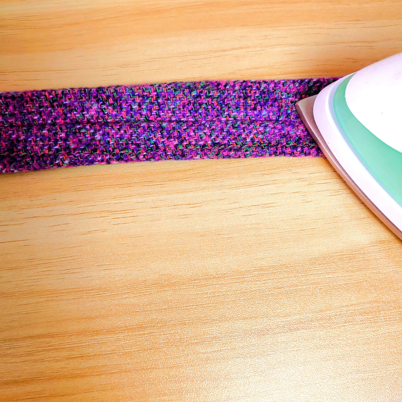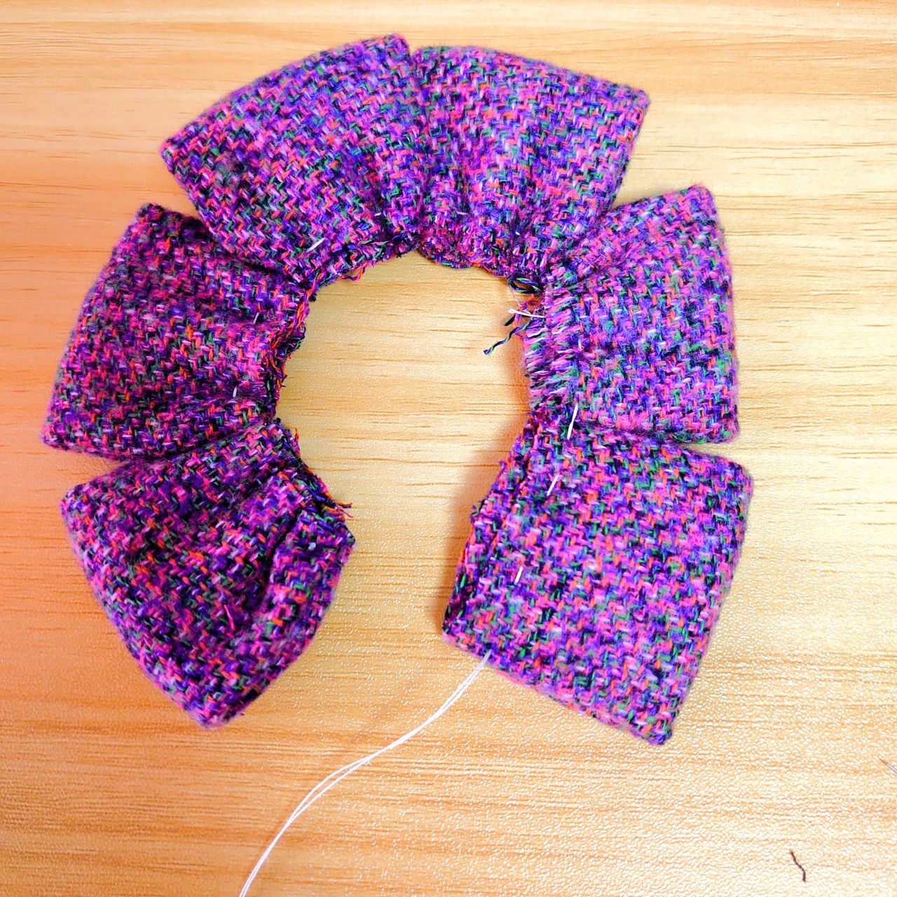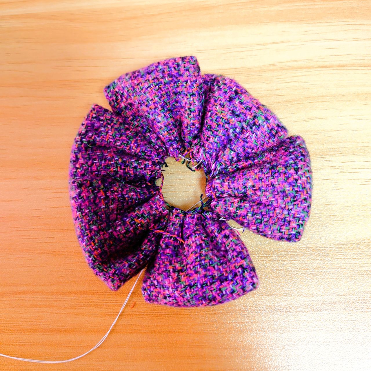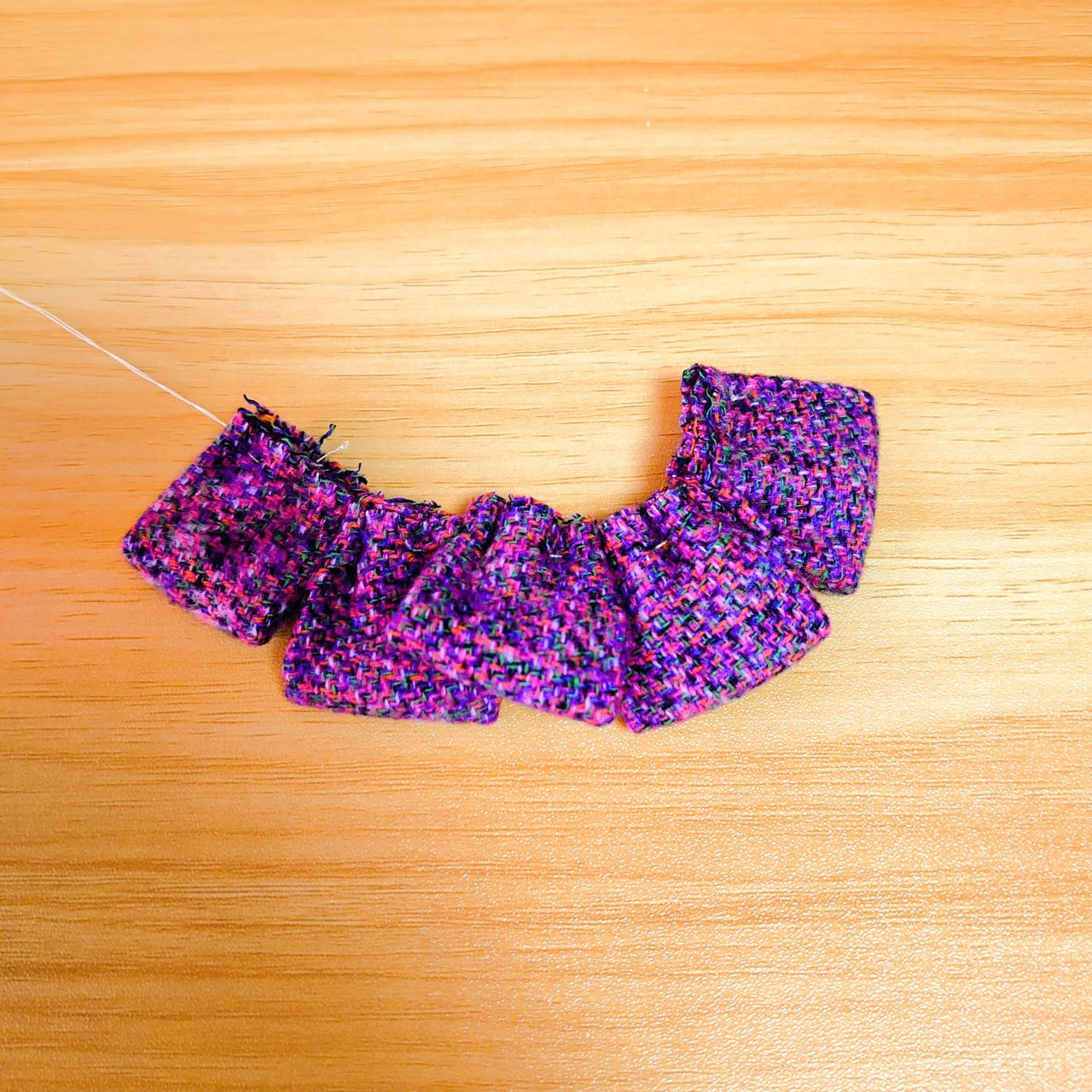 もう1枚折った生地を中心に重ねて糸で縫いとめます。