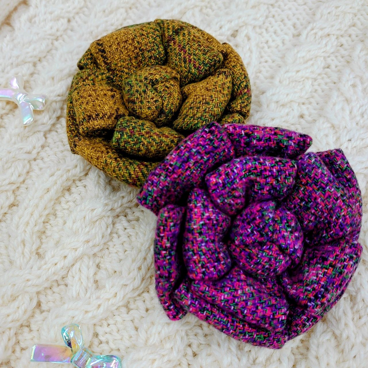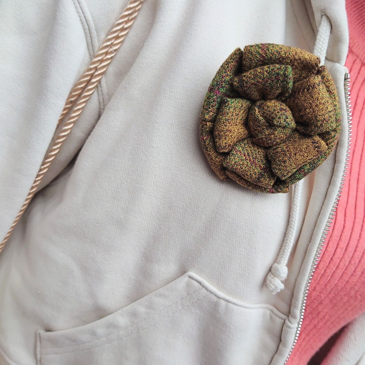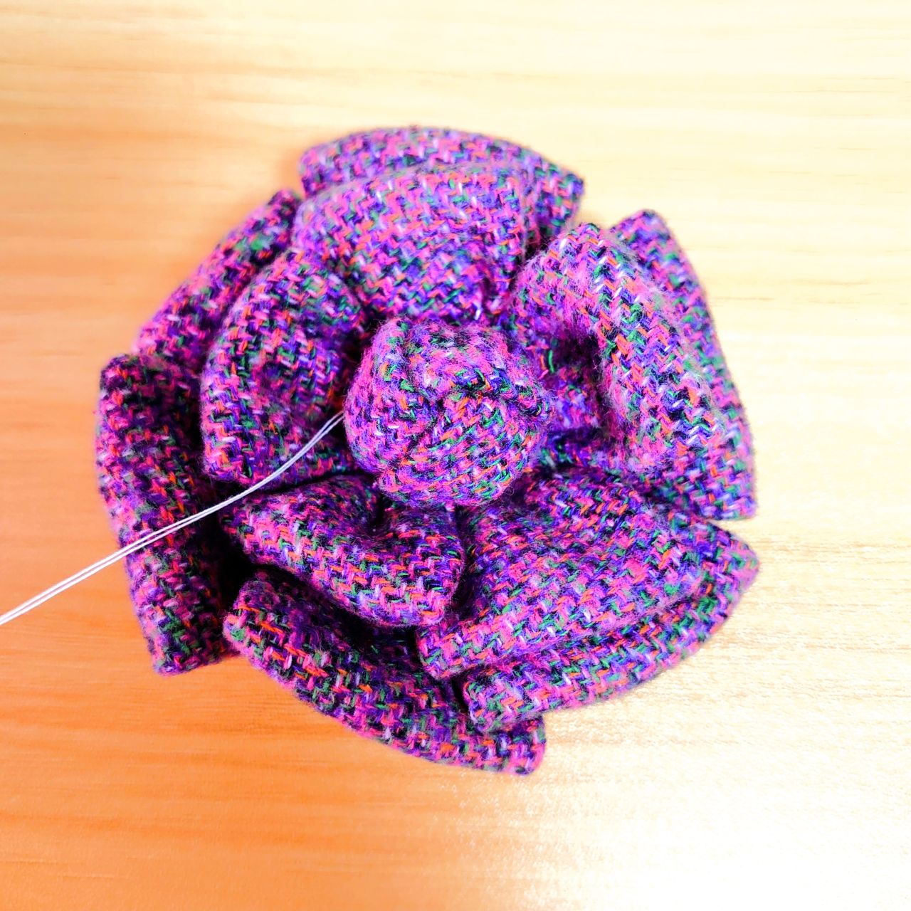 冬におすすめの生地でカメリア風コサージュを作ってみました
