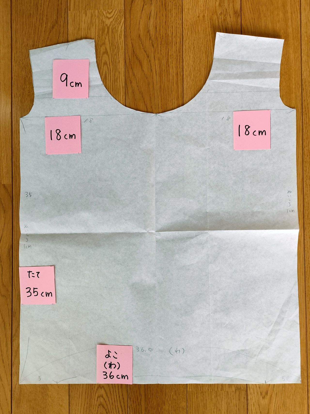 型紙の底が輪になるように布を折って型紙を乗せます。