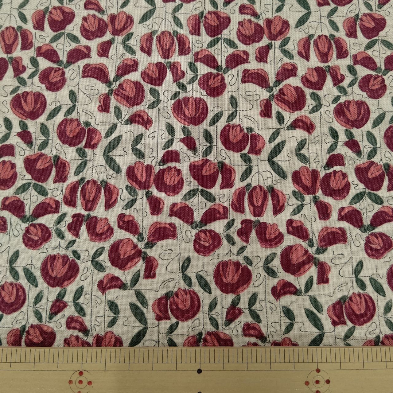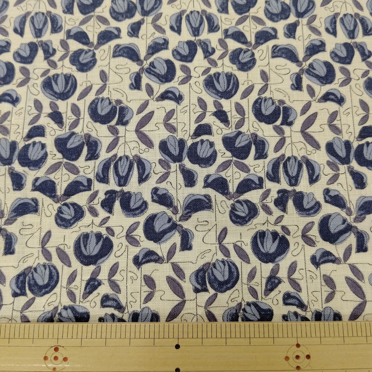 もともと1900年代初期につくられた柄をヒントにした柄です。アール・ヌーヴォー時代の典型ともいえる小花がたなびくように様式化されて描かれています。