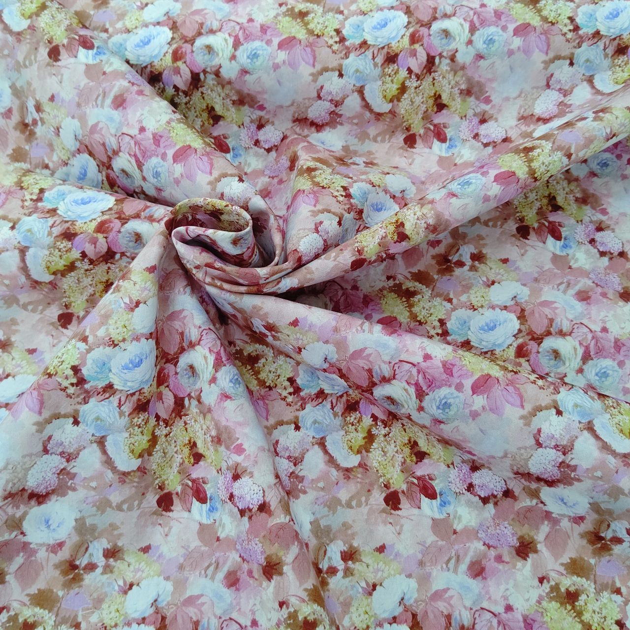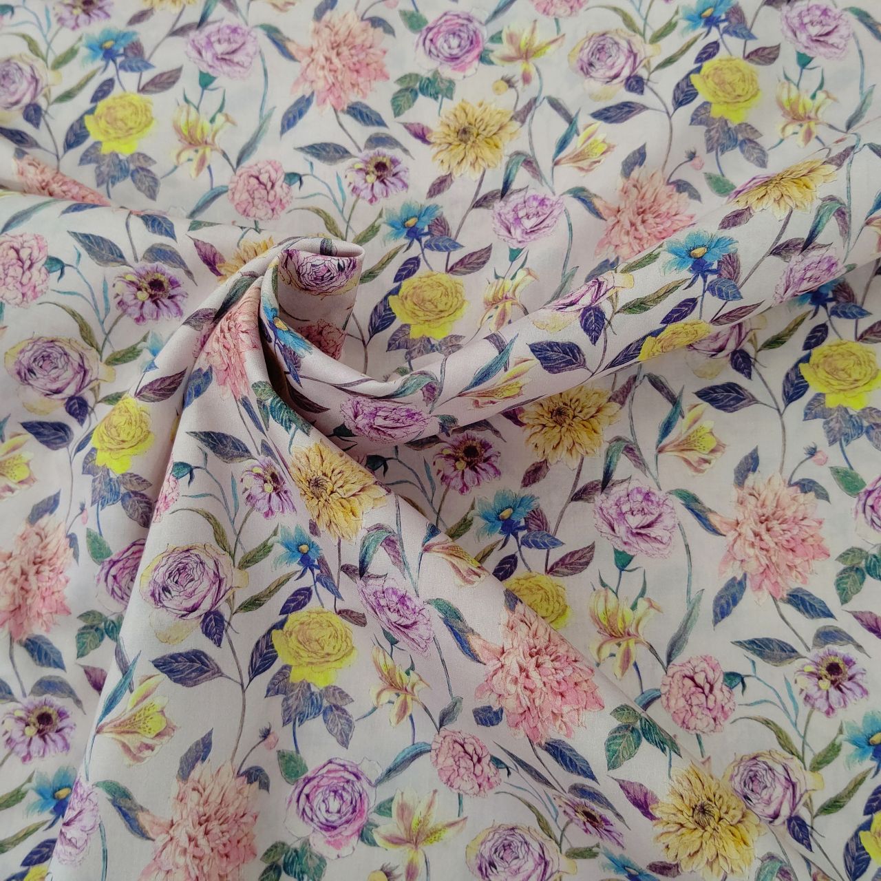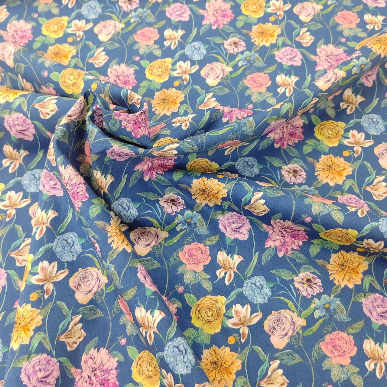 豊かな色彩とディテールが特徴的な「ソフィア・ガーデン」は、実りの秋、晩夏の花々や草花を讃えています。アクリル絵の具で表現力豊かな筆跡を使って描かれたこの高密度の多方向デザインは、色とパターンのタペストリーを形成しています。