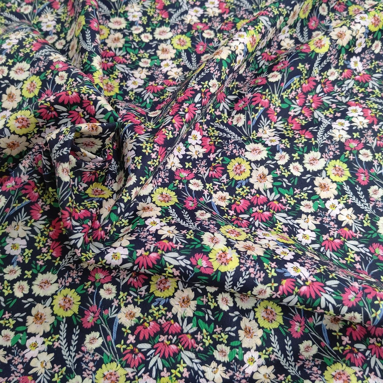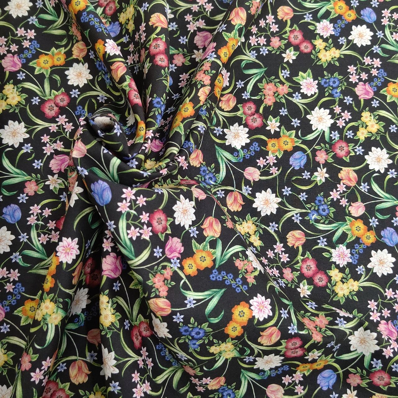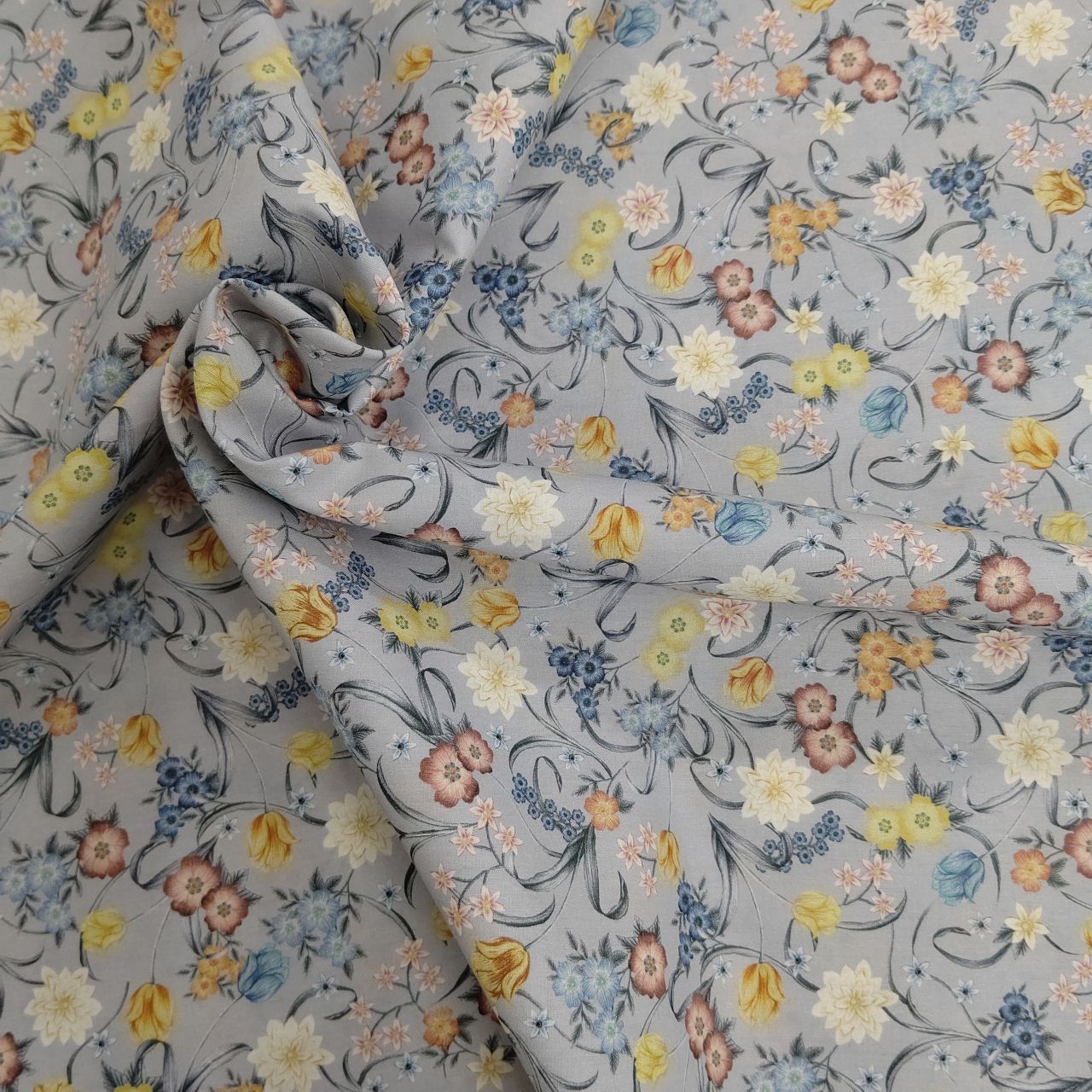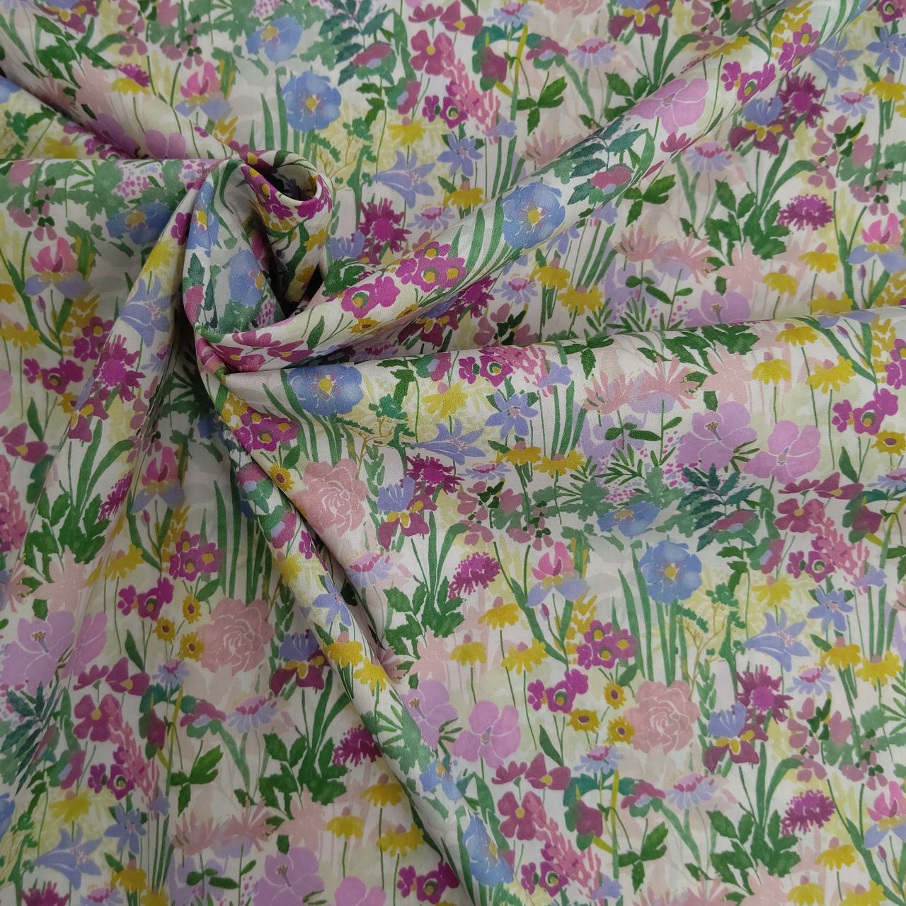 水彩絵の具で描かれた小さな花々を、繊細に配置した多方向のボタニカルなデザインです。イトシャジン、亜麻、ハナタネツケバナ、マンテマ、ツルニチニチソウ、ハコベ、クレイトニア・シビリカなどが描かれています。