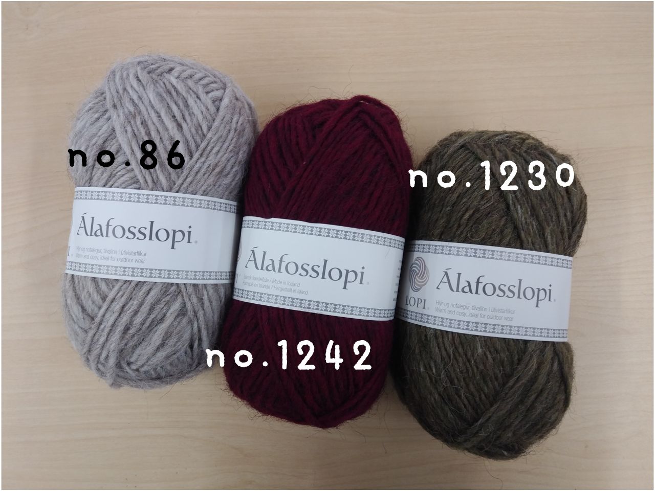 3色各1玉 合計3玉で帽子とミトンが編めます。
