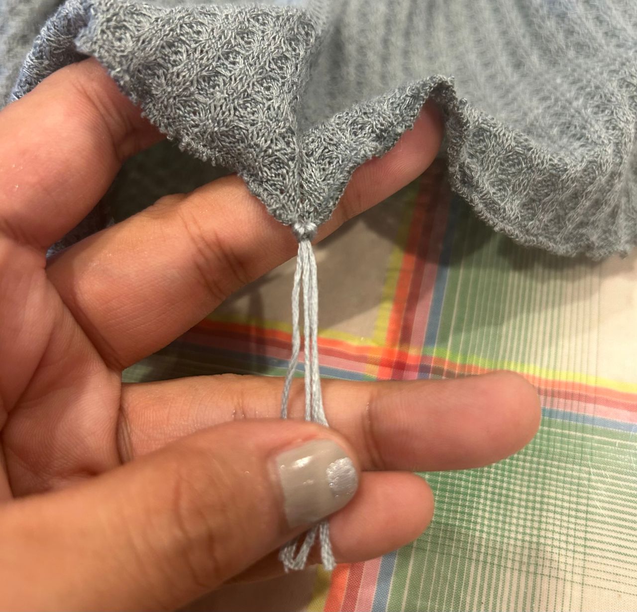 通販でトップス買ったら丈が短い→刺繍糸でフリンジを付けて長さ出ししてみました