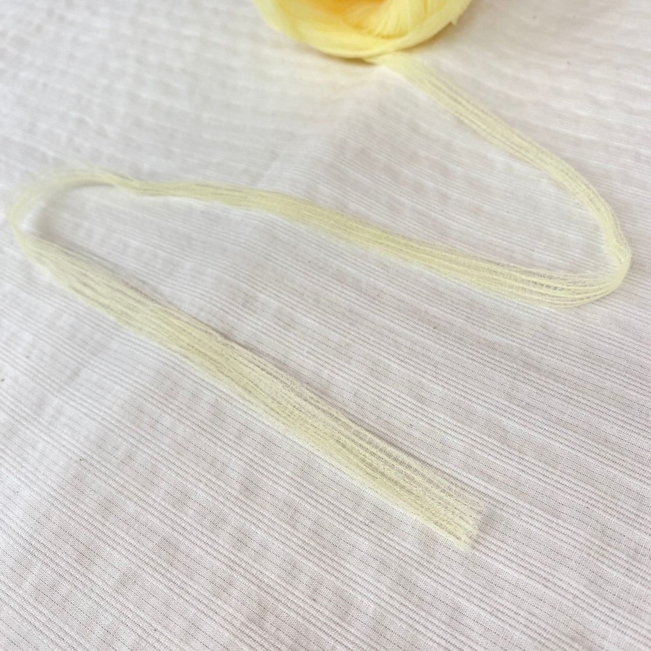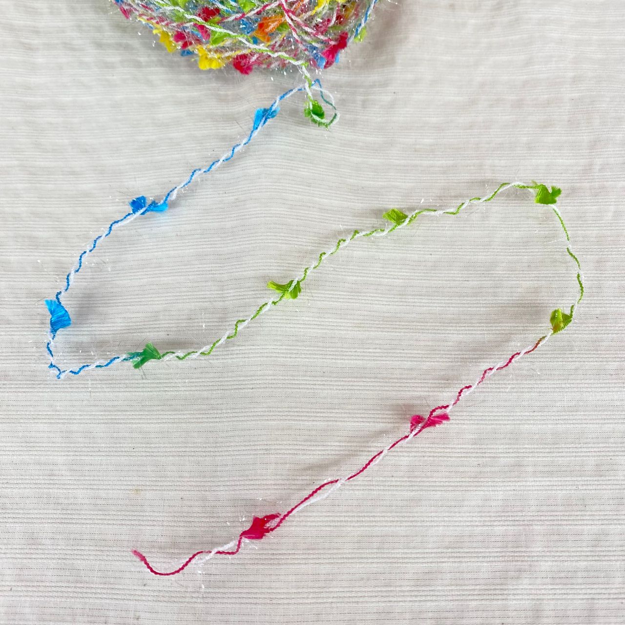 フィルム糸とネップ糸を撚り合わせて作られた糸です。