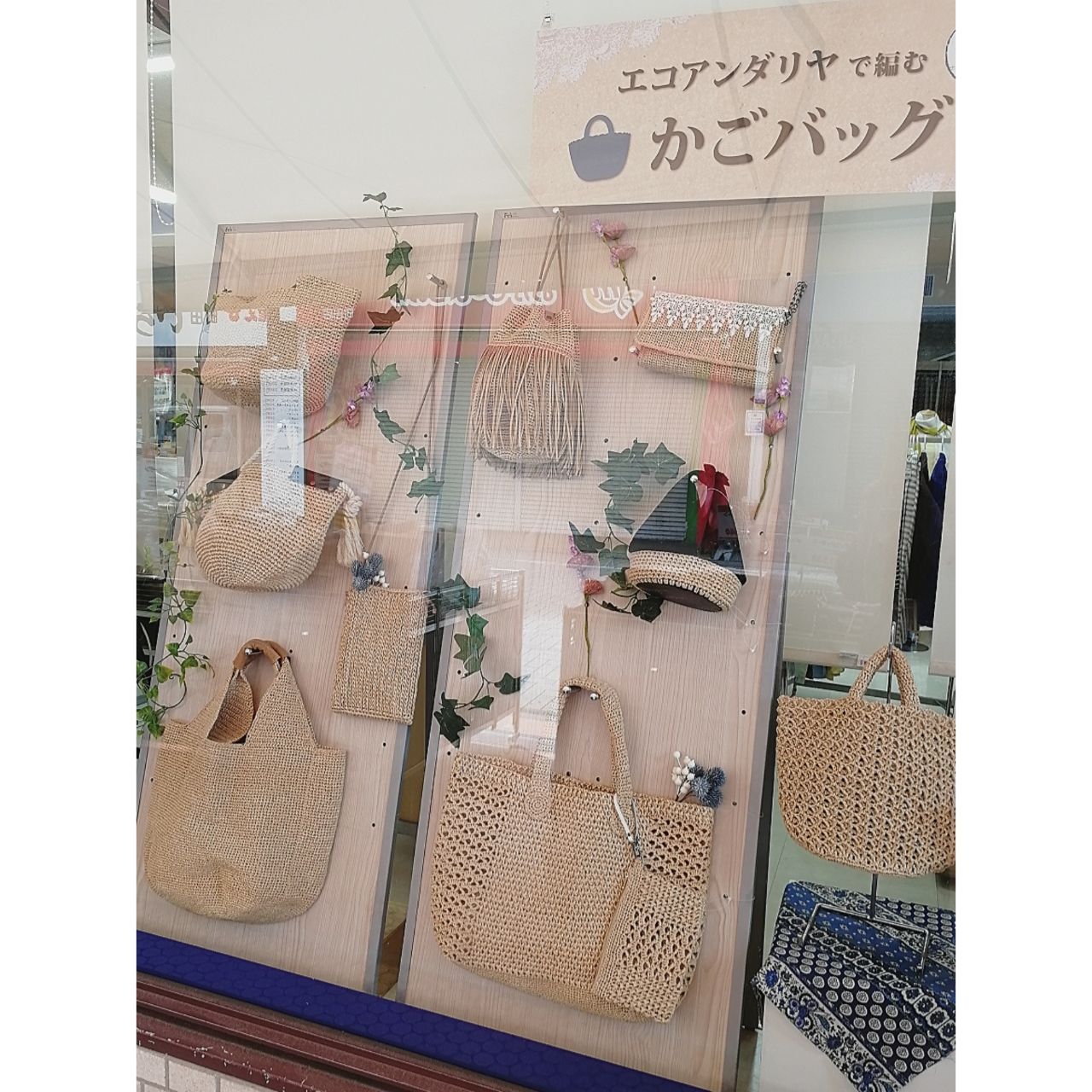 【1階ウィンドウ】エコアンダリヤ23番糸で編むかごバッグ展♪