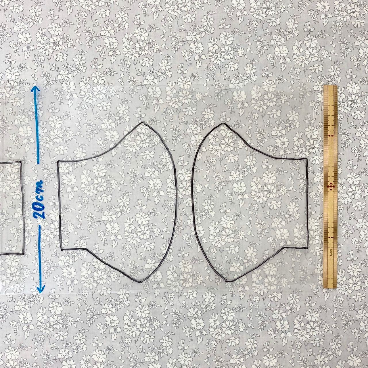 20㎝の長さで立体マスク(大人用)の型紙がこのように取れます↓↓
