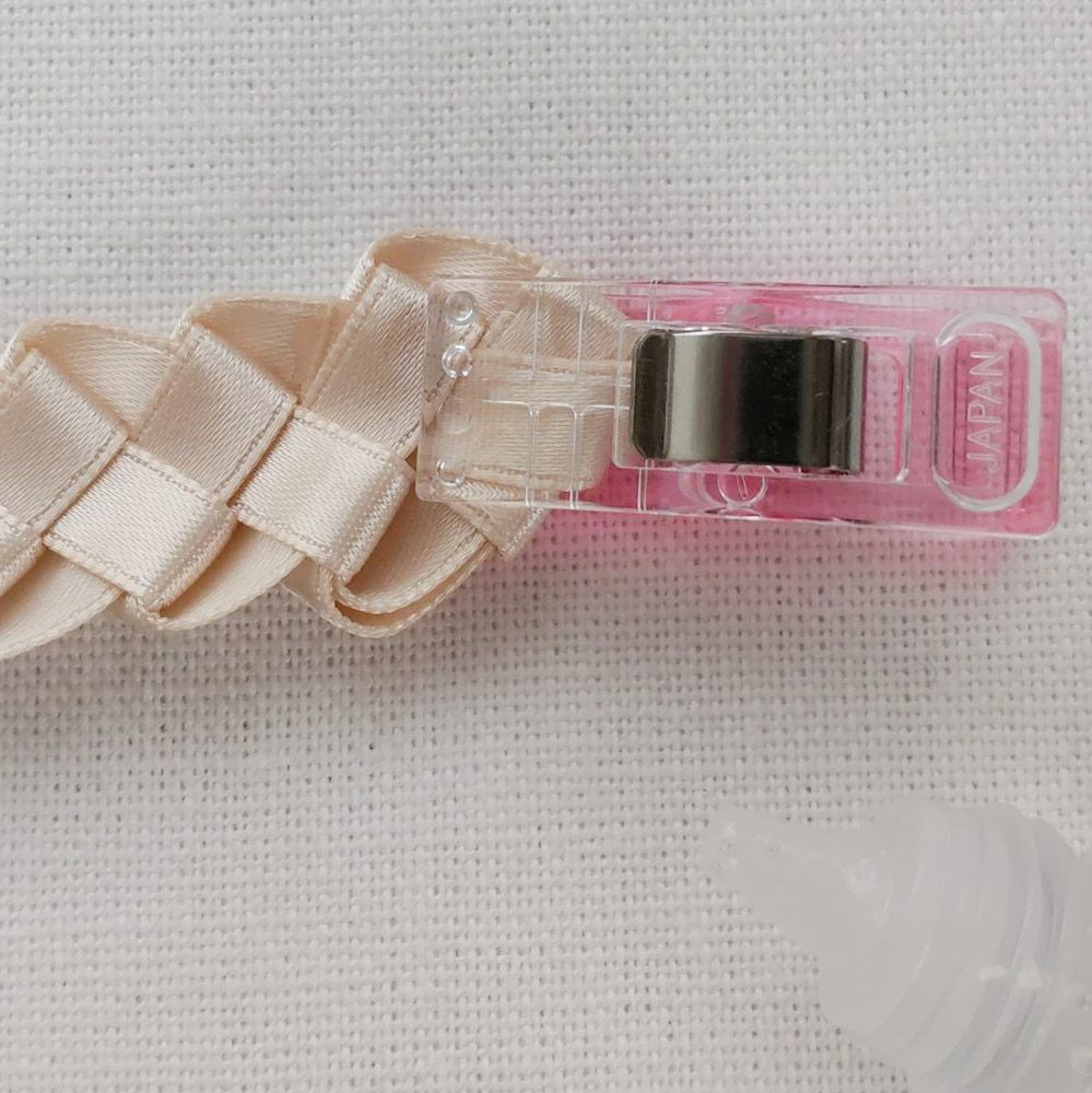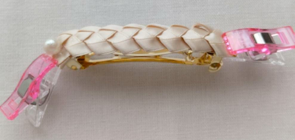 8.バレッタ金具にボンドで貼り付け、乾くまでクリップで固定します。乾いたら完成です。