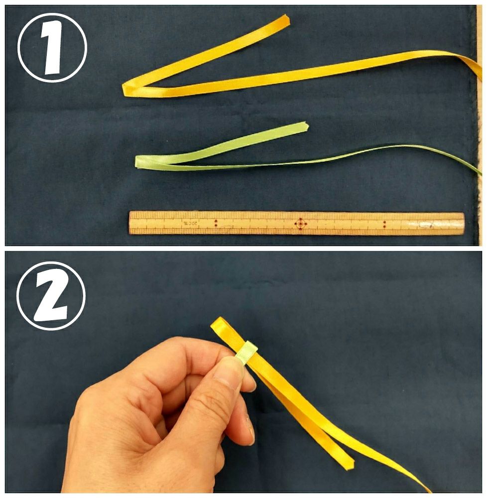 1.50cmのリボンを2本用意します。10cm程折り返します。