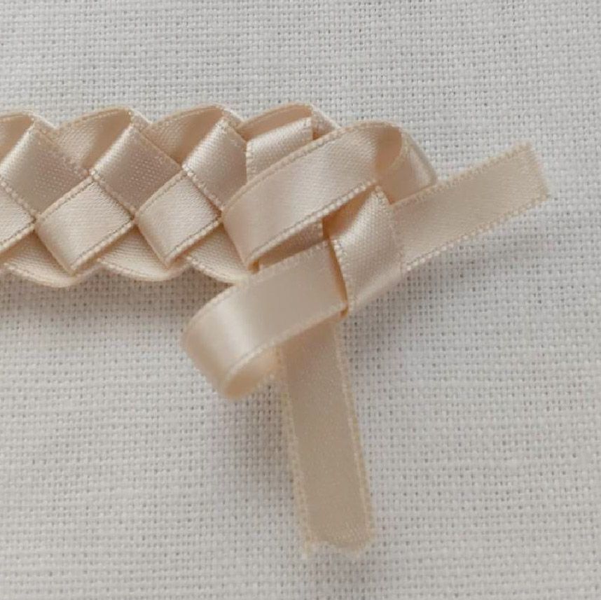 7.左右交互に組み合わせて編み進みます。リボンは緩すぎずきつすぎず、均一に引き締めると良いです。