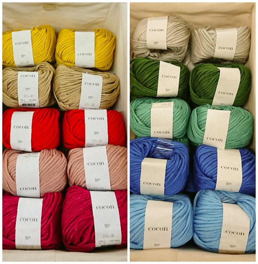 オカダヤオリジナル毛糸の「ココン」は芯に綿を通して糸に成形した軽い糸です。