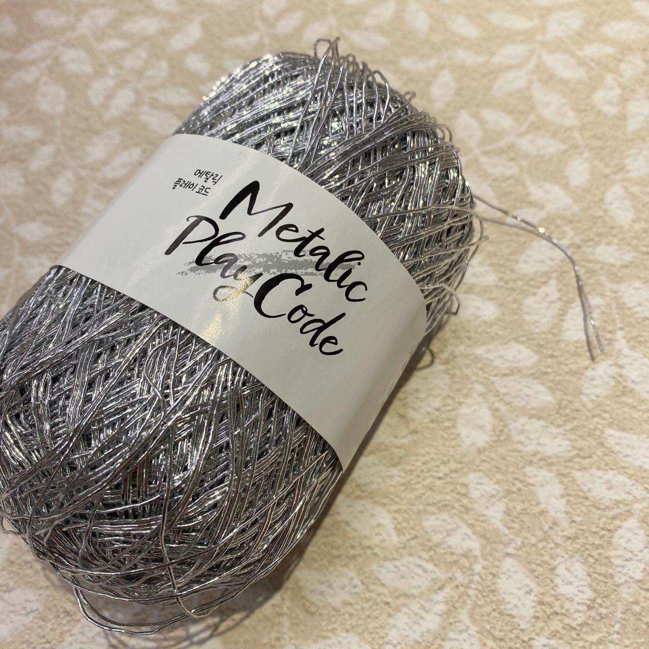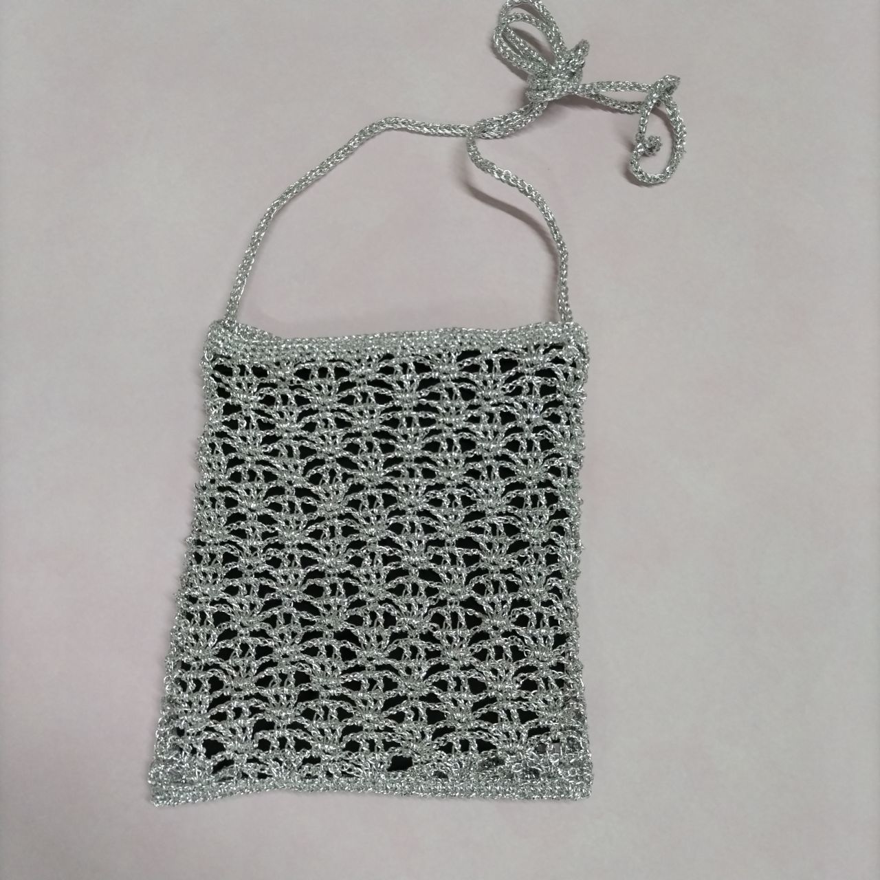 メタリックプレイコード1玉で編めるミニバッグの編み図を差し上げています。