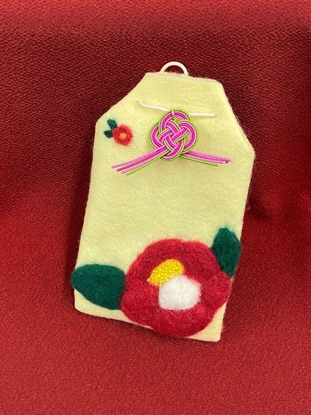 右からポリエステルちりめんとアムンゼンの花びらのような巾着。
